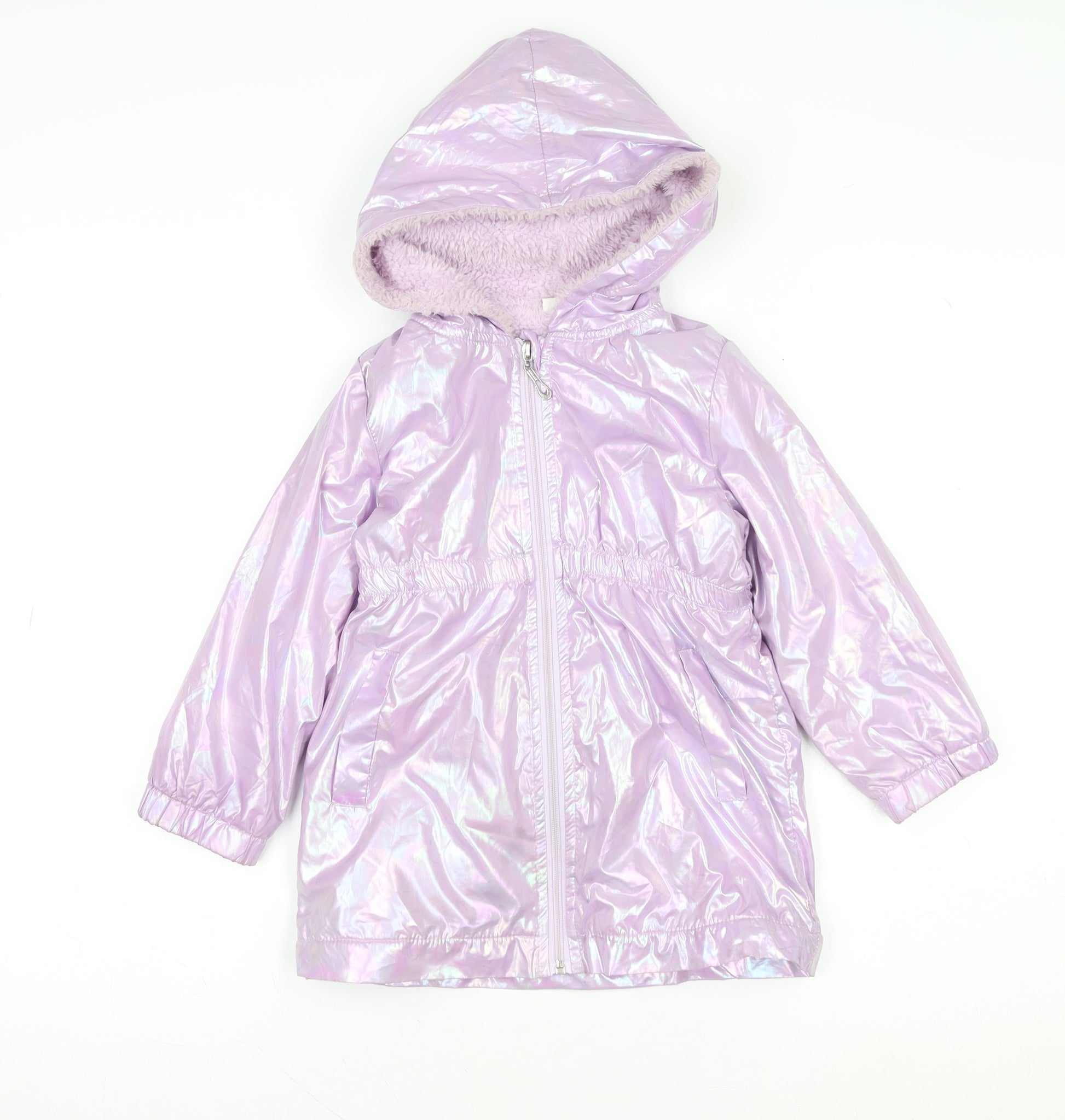 SHEIN Girls Purple Hooded Iridescent Puffer Coat 4 Years Lined Winter Jacket