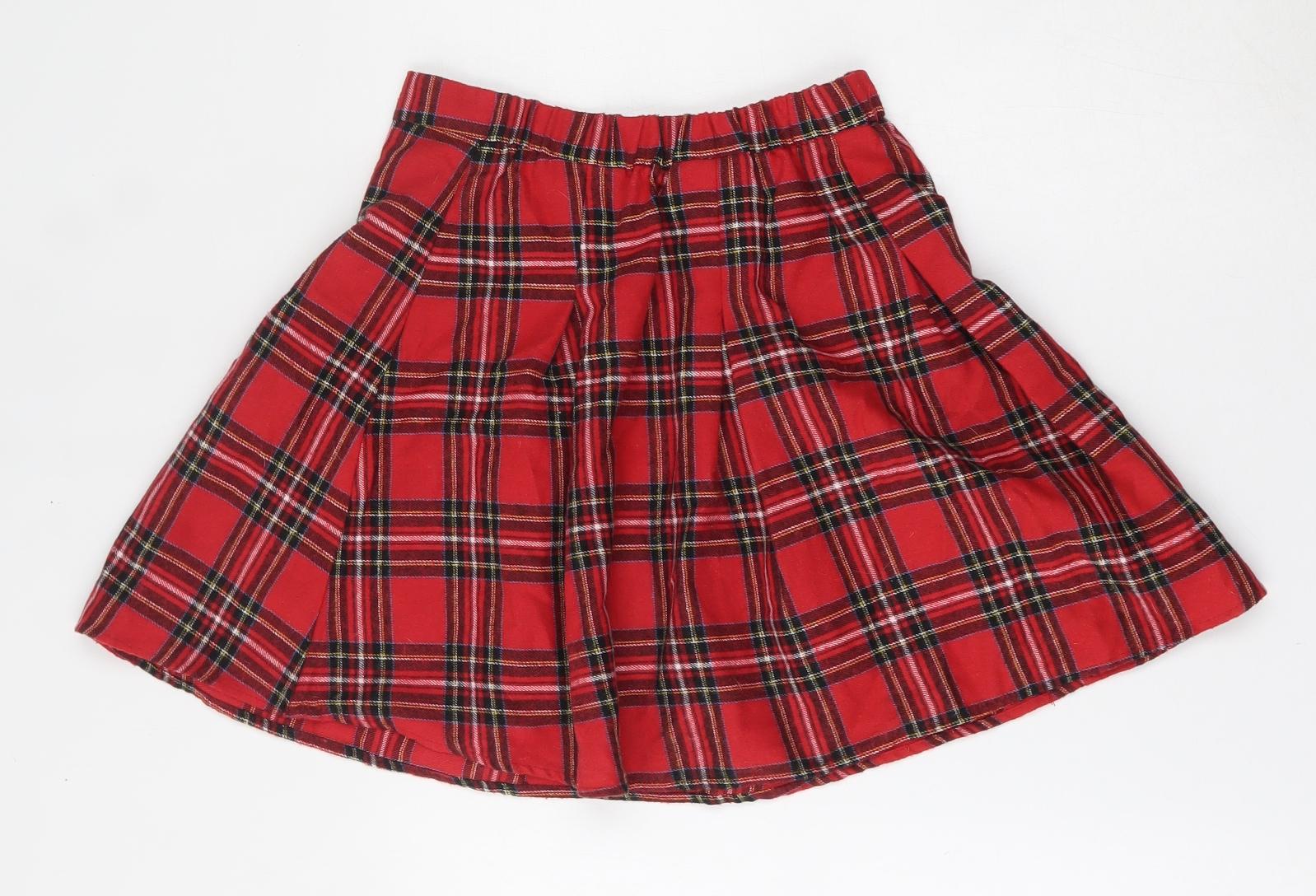 Girls Red Plaid Cotton Skater Skirt Size 11-12 Years Regular