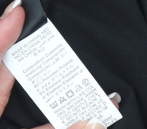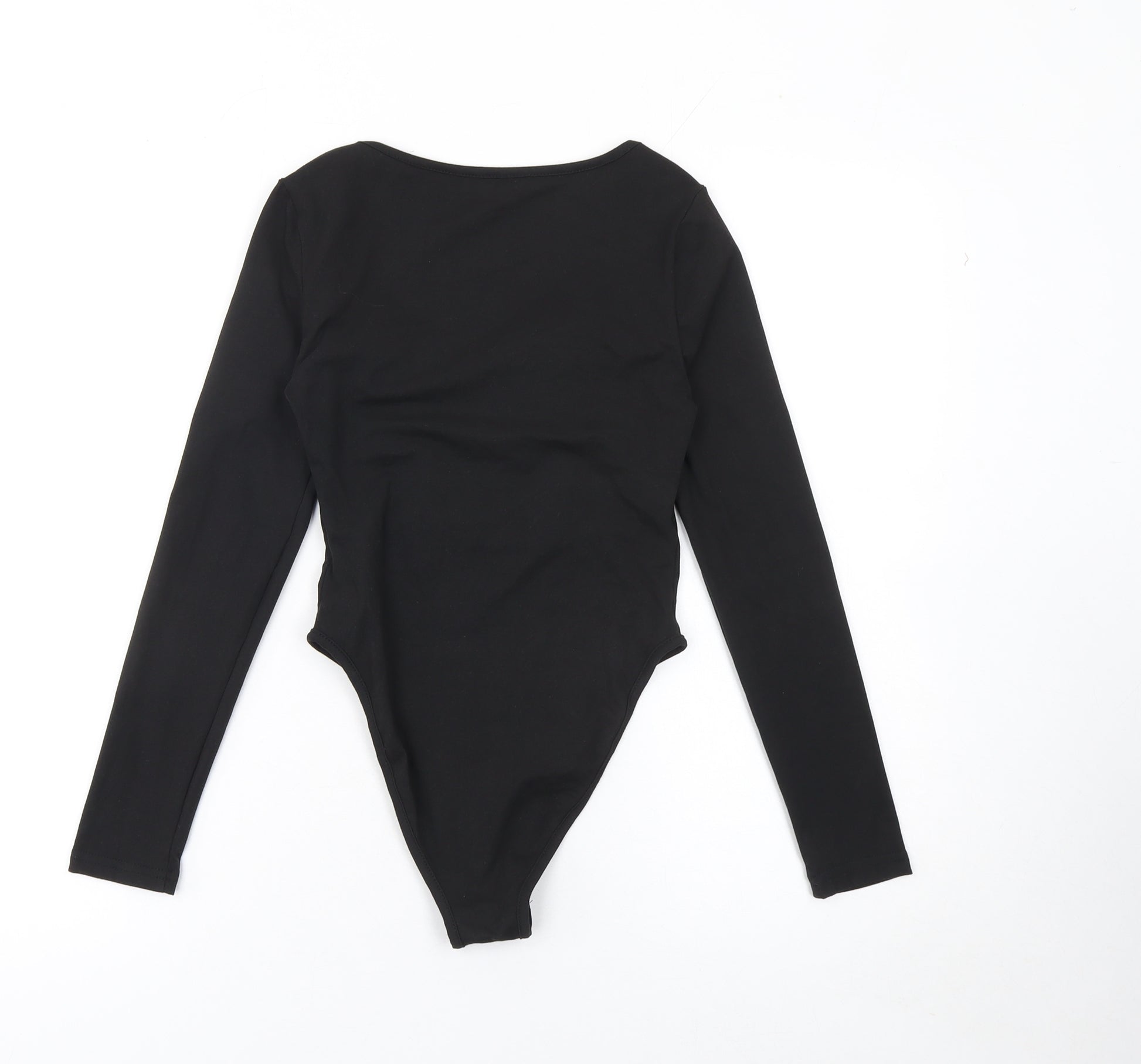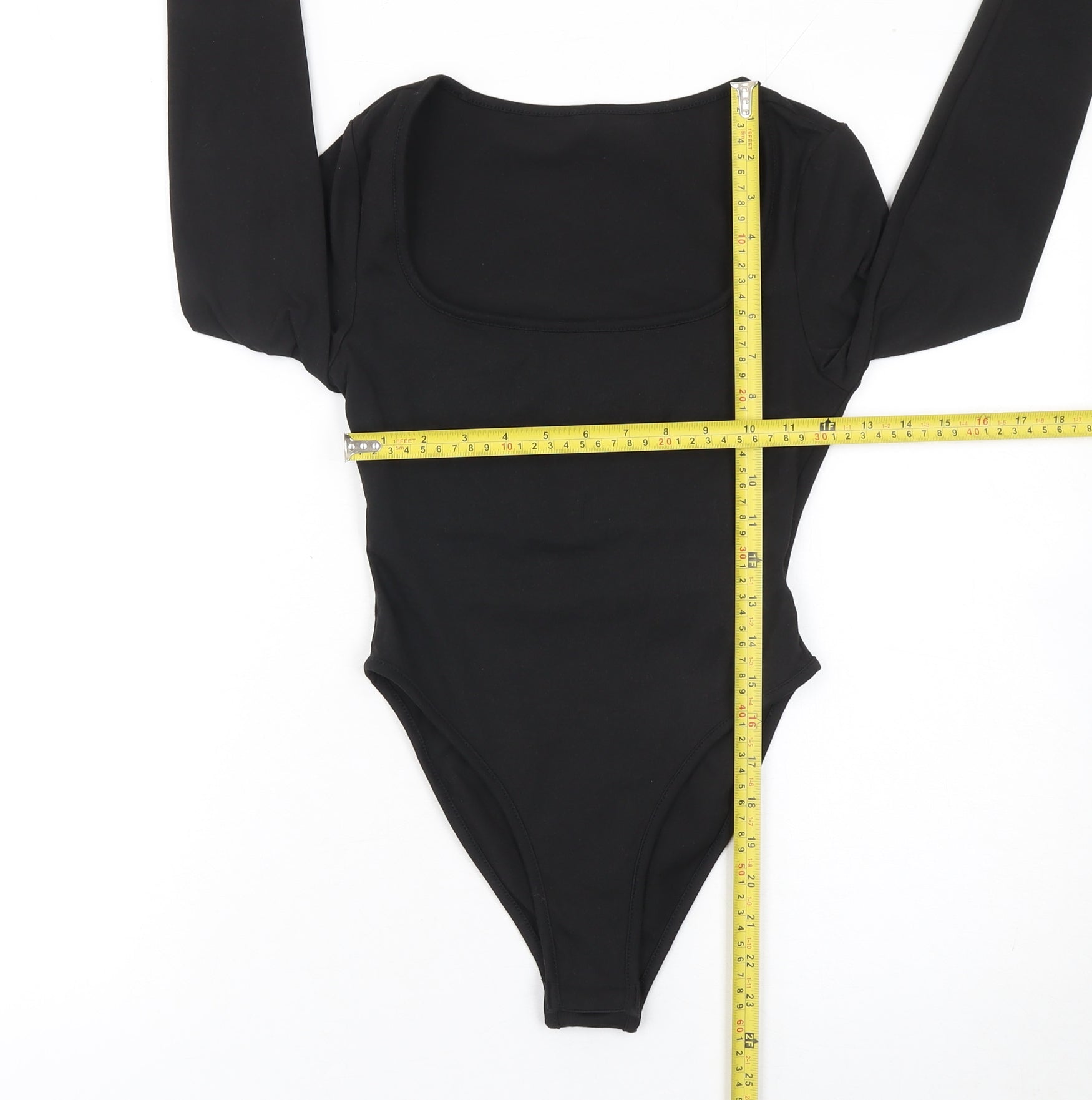 This SHEIN women’s black long sleeve bodysuit is a stylish and versatile addition to any contemporary wardrobe, designed in a classic petite XXS fit. Crafted from a smooth jersey fabric composed of 95% polyester and 5% elastane, it offers a soft, stretchy, and comfort-focused feel that moves with the body. The slim silhouette makes it ideal for layering or wearing solo to create sleek, minimal looks suitable for day or night. Featuring a scoop neckline that adds a touch of femininity and long sleeves for coverage, this bodysuit blends simplicity with elegance. The snap closure at the crotch ensures ease of wear while maintaining a seamless finish when tucked into jeans, skirts, or tailoring. Perfect for any casual or ‘going out’ outfit, its lightweight and machine washable material provides practical comfort without compromising on style. Designed for petite proportions, this fitted bodysuit hugs the form beautifully, enhancing a flattering streamlined appearance. Ideal for all seasons, it can be layered under jackets during cooler months or worn on its own in warmer weather. Whether styled with denim, leather trousers, or a statement mini-skirt, this piece transitions effortlessly from daywear to evening chic. In excellent pre-loved condition with no visible marks or damage, it remains a wardrobe must-have for those seeking an effortless yet chic foundation garment that offers both versatility and comfort. A perfect choice for women who appreciate refined basics and sleek styling, this black SHEIN bodysuit will quickly become a reliable go-to for modern, confident dressing.