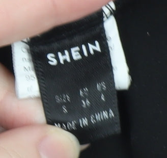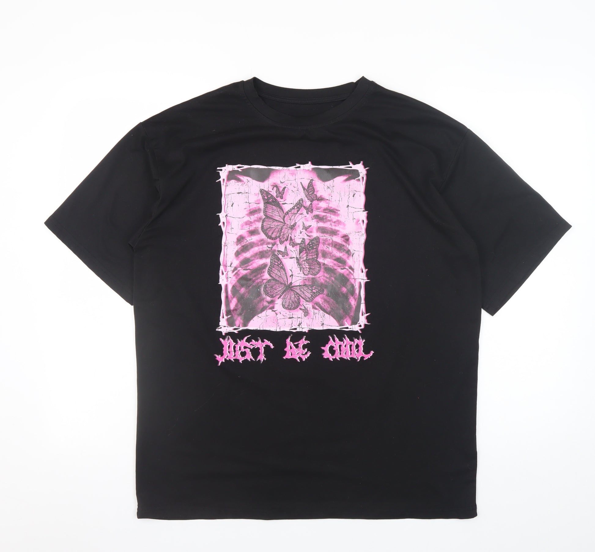 Step up your everyday style with this chic SHEIN Women’s Black Butterfly Graphic T-Shirt in size S. Crafted from a soft jersey fabric blend of 95% polyester and 5% elastane, this tee offers a comfortable, slightly stretchy fit perfect for all-day wear. The black background features a striking pink gothic-style butterfly and ribcage print, giving the shirt an edgy yet feminine aesthetic. Designed with a crew neckline and short sleeves, this top brings effortless casual flair to your wardrobe while maintaining a stylish, contemporary appeal. The lightweight and breathable fabric make it ideal for seasonal wear across spring, summer, and even autumn, whether paired with jeans, skirts, or shorts. The pullover design allows for easy dressing, while its regular fit ensures comfort and easy layering under jackets or cardigans. The artistic graphic print and soft material combine style with practicality, making it perfect for casual outings, shopping, hanging out with friends, or simply relaxing at home. The minimalist cut keeps the look versatile while the butterfly motif adds personality and visual interest. With its fashion-forward vibe and quality construction from SHEIN, this T-shirt balances trend and comfort seamlessly. Machine washable for easy care, it’s an effortless choice for adding a touch of gothic-inspired charm and expressive flair to your casual collection. In excellent pre-owned condition with no visible signs of wear, this piece is perfect for anyone who loves unique printed tees that stand out while feeling soft against the skin. A must-have for any modern wardrobe, offering the ideal blend of comfort and cool streetwear styling.