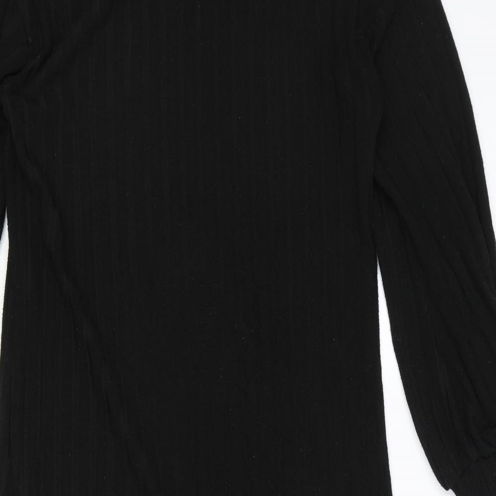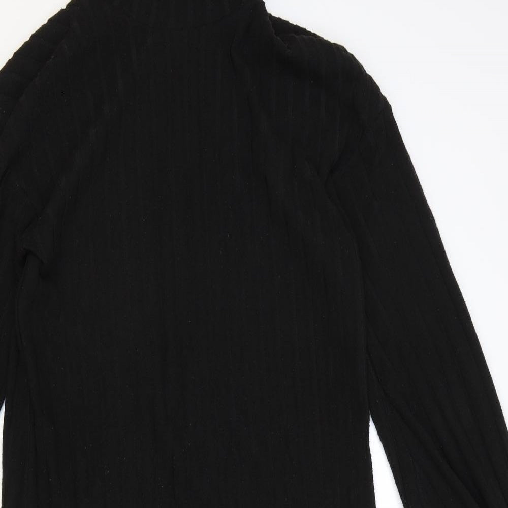 Womens Black Polyester Jumper Dress Size M High Neck Pullover