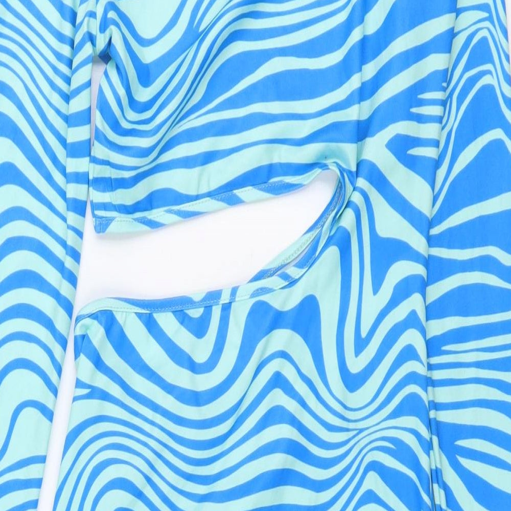 Womens Blue Animal Print Polyester Bodycon Size XS Boat Neck Pullover