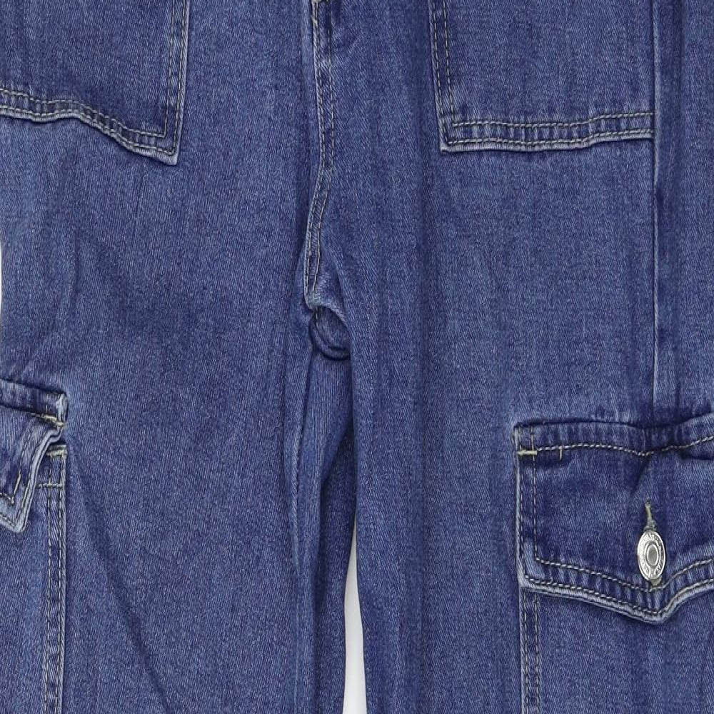 Uniqlo Women Blue Striped Skinny Jeans M Relaxed Fit