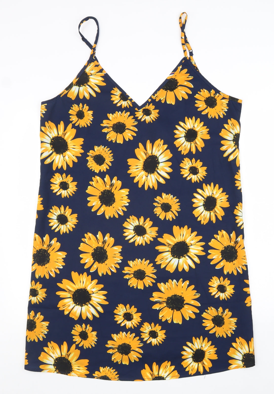 Womens Blue Floral Polyester Tank Dress Size XL V-Neck Pullover