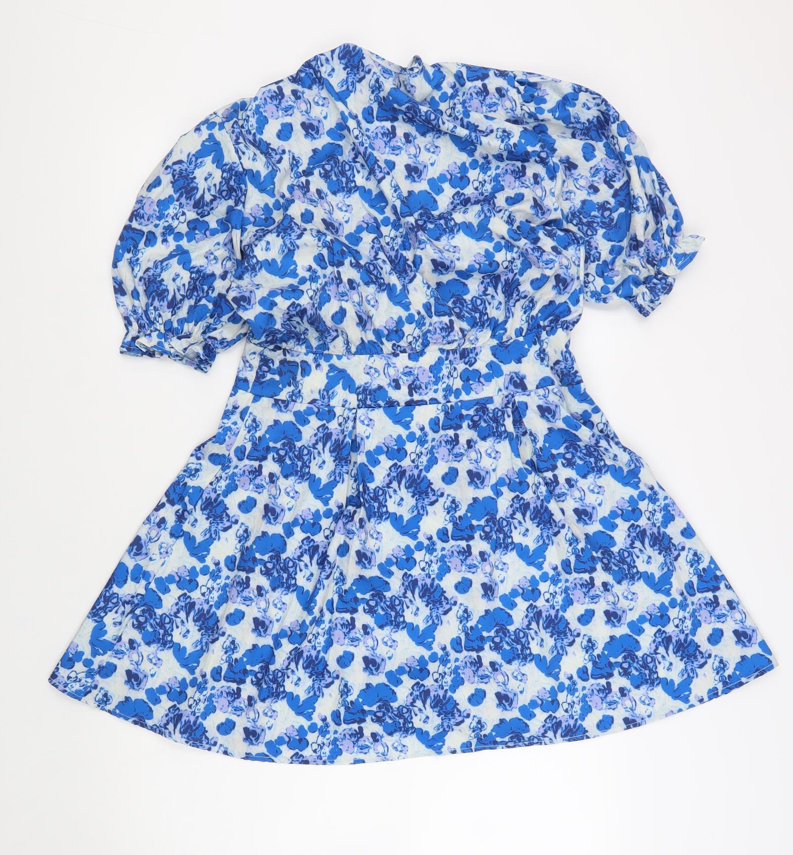 Chip Clip Womens Blue Floral Polyester Fit & Flare Size L Round Neck Pullover