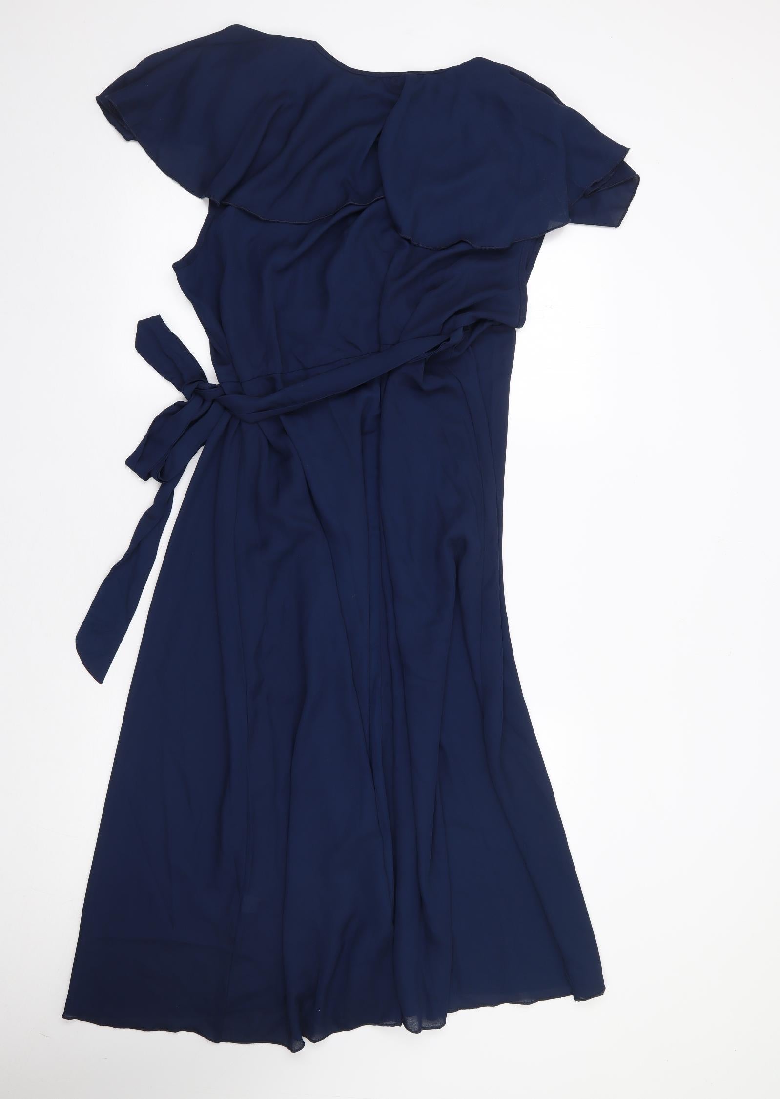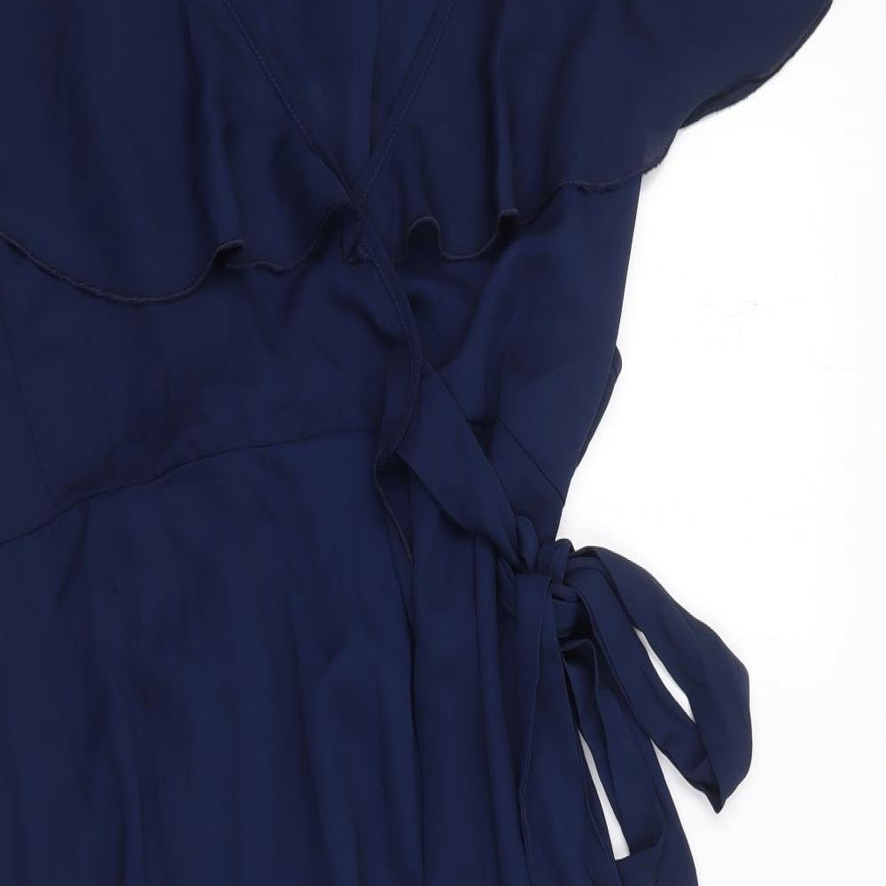 Womens Blue Polyester Wrap Dress Size 2XL V-Neck