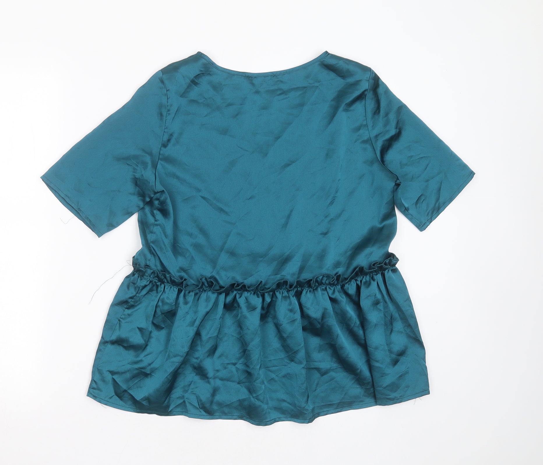 Womens Green Polyester Basic Blouse Size XS V-Neck