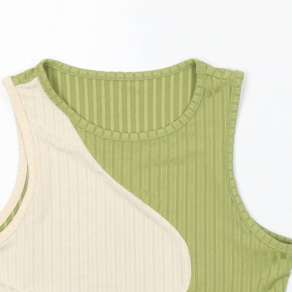 Womens Green Polyester Basic Tank Size M Round Neck