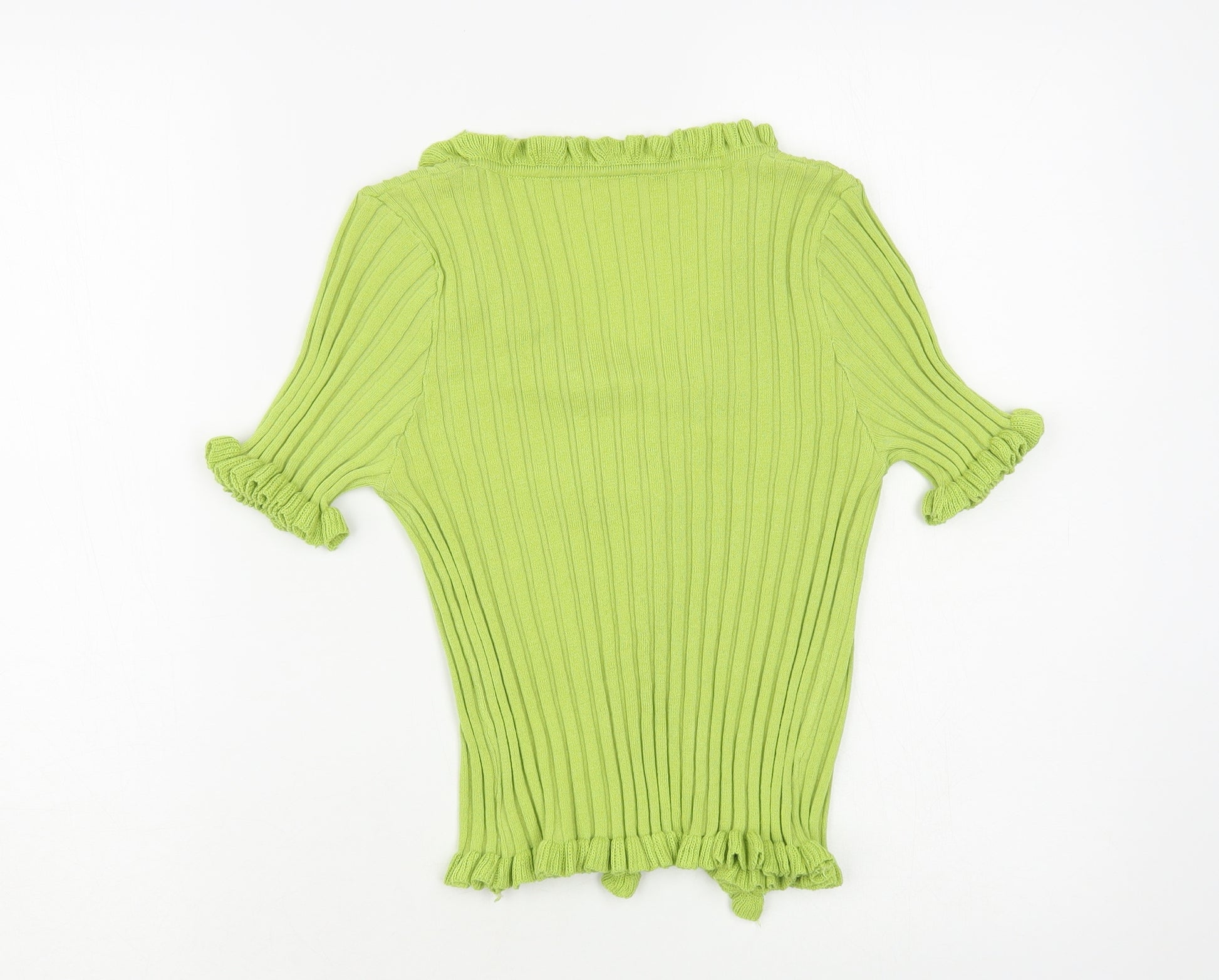 Womens Green V-Neck Polyester Cardigan Jumper Size M