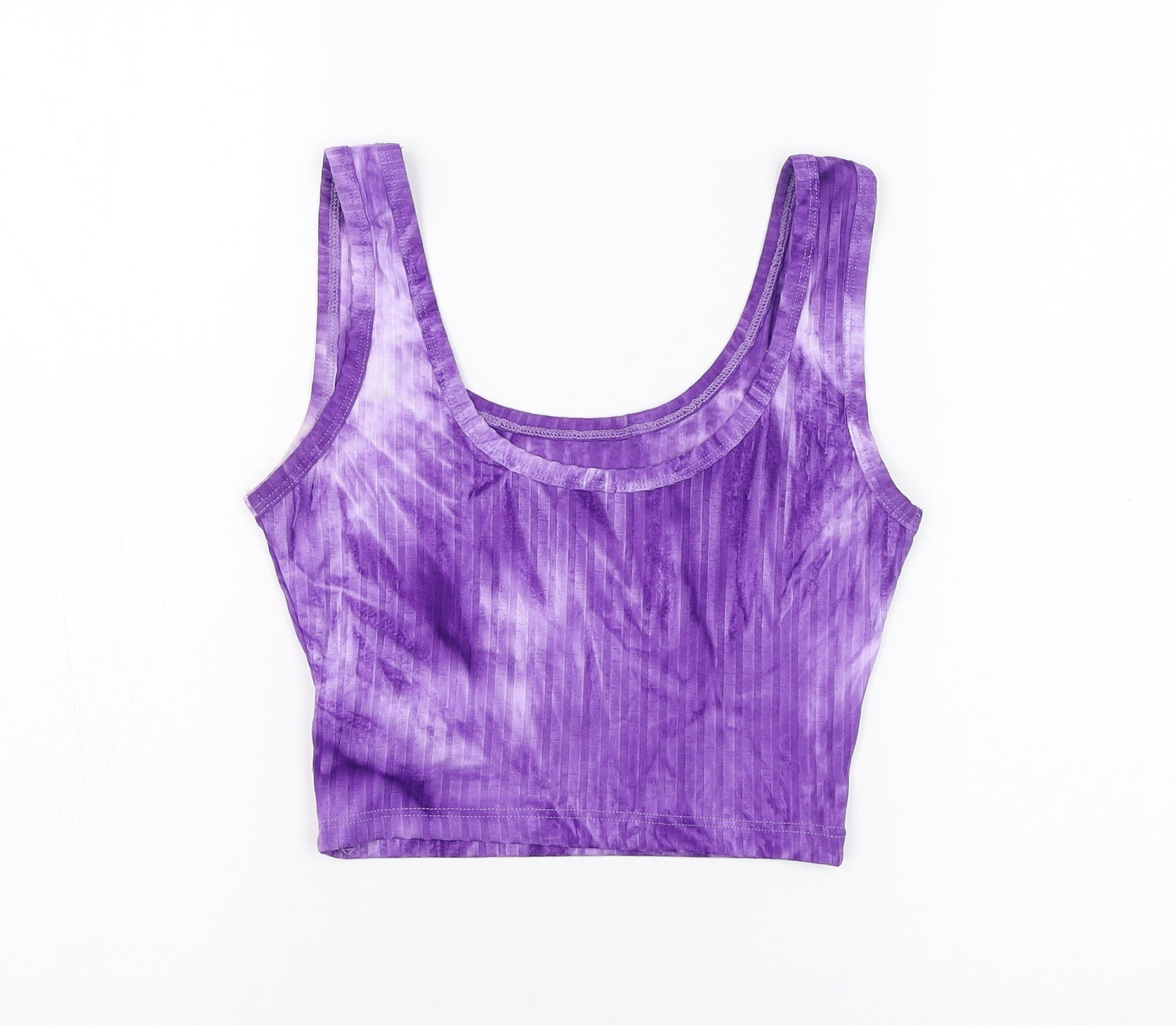 Womens Purple Polyester Basic Tank Size S Round Neck