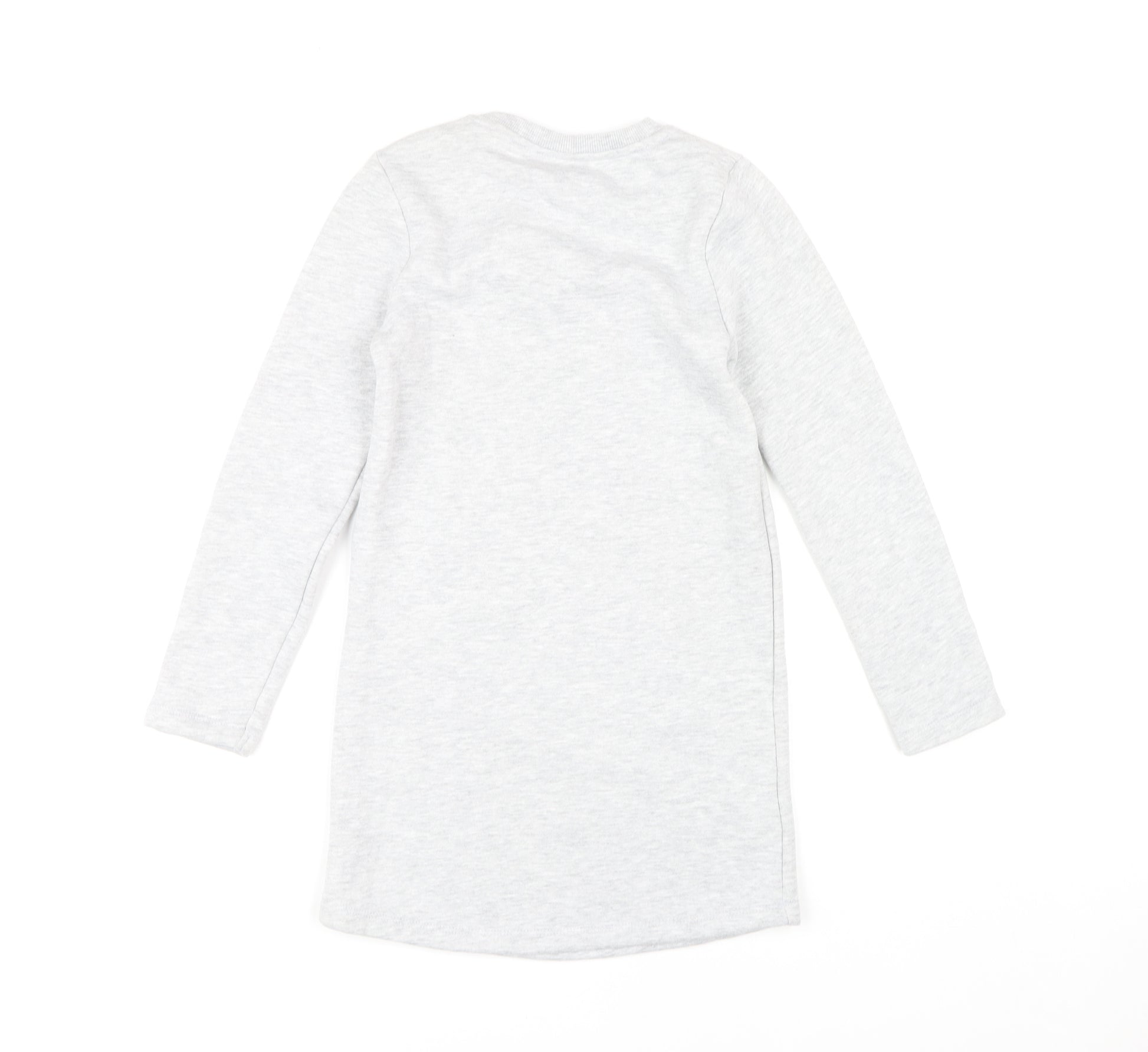 Girls Grey Multicoloured Long Sleeve Dress, Size 9-10 Years