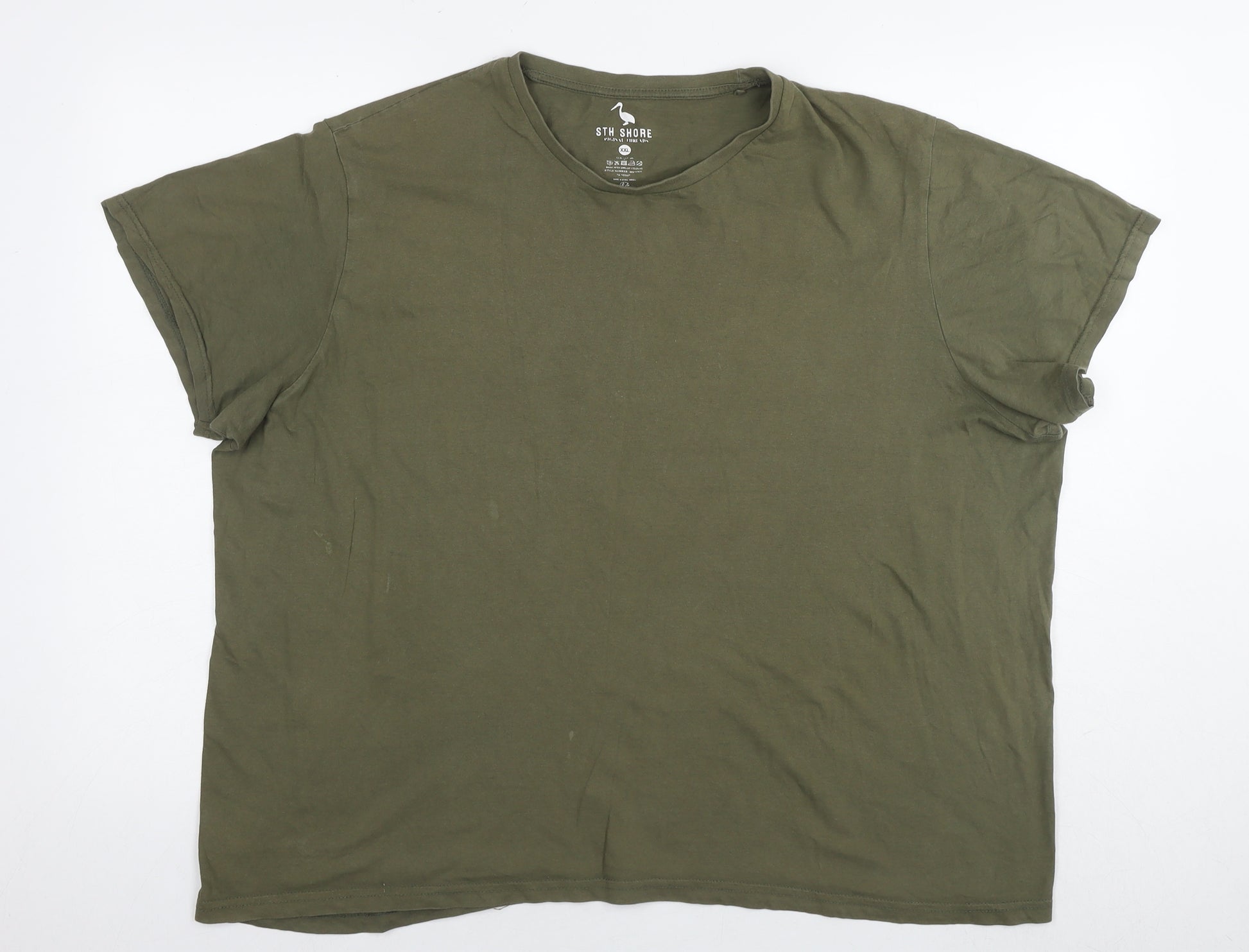 Womens Green Cotton Basic T-Shirt Size 2XL Round Neck