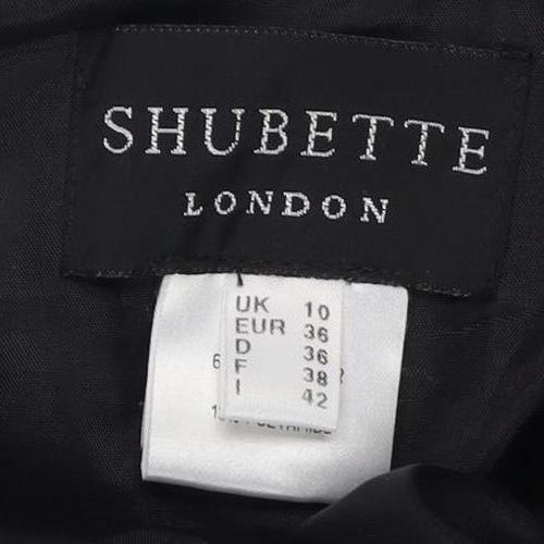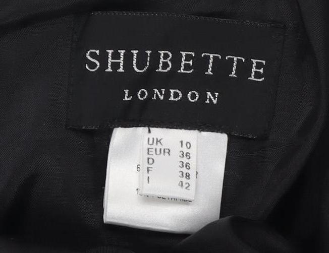 This stylish Shubette London pencil skirt in classic black is the perfect addition to your wardrobe for versatile wear. Crafted from a blend of polyester, viscose, and polyamide, it offers comfort and durability. Designed for women, this skirt in size 10 features a sleek, straight silhouette that pairs well with any top, making it ideal for both casual and formal occasions. With its timeless pencil skirt style, you can wear it confidently to the office or during a night out. Despite being pre-loved, it remains in excellent condition with no visible wear or damage. This elegant skirt is a must-have for any fashion-forward individual looking to enhance their collection with a quality piece from Shubette London.