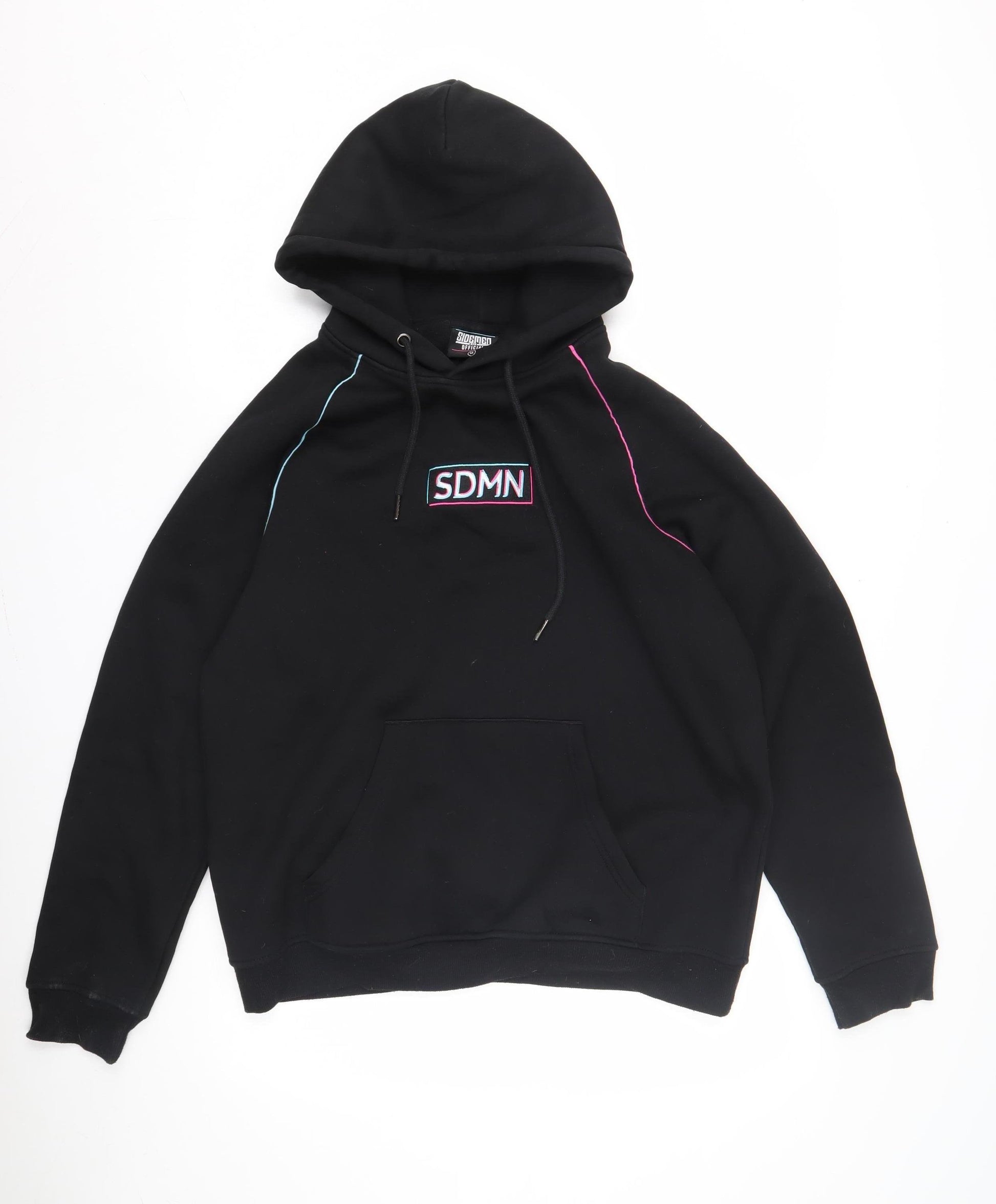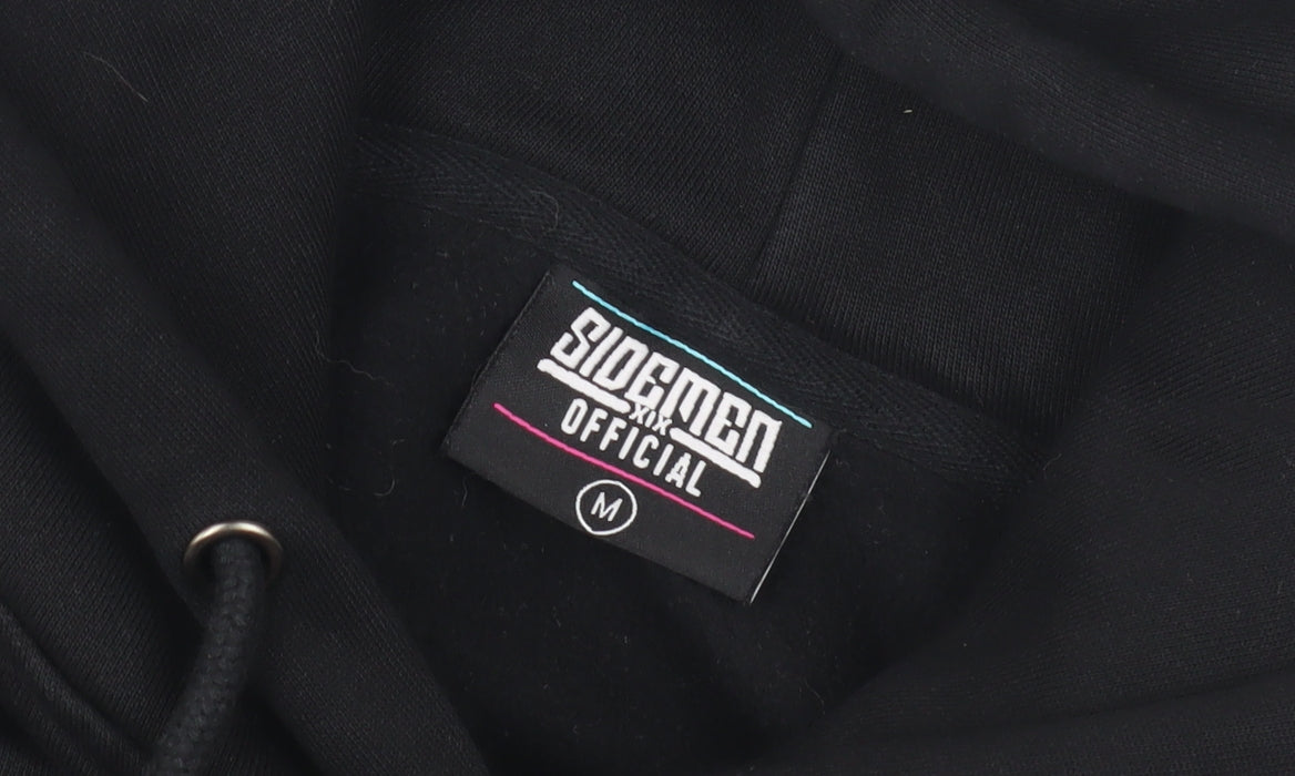 Step up your hoodie game with this stylish Sidemen Official Hoodie in striking black, designed specifically for men who appreciate fashion and comfort. Crafted from 100% cotton, this pullover hoodie guarantees a soft and breathable feel, perfect for keeping warm during the cooler autumn and winter seasons. The medium size offers a regular fit, making it ideal for everyday wear.Featuring an embroidered 'SDMN' logo on the chest, this hoodie not only displays your support for the renowned YouTube group but also provides a subtle yet distinctive finish to your outfit. The hood comes with a drawstring for adjustable comfort, ensuring your head stays covered against the chill, while the spacious front pouch offers room to keep your hands warm or store small essentials on the go.Designed to make a statement, the contrasting coloured sleeve details give this hoodie a touch of contemporary flair, ensuring you stand out in style. This versatile piece fits seamlessly into any casual wardrobe, suited for leisure, sports, or relaxed outings.With practical machine washability, keeping your hoodie looking fresh is simple, and its durability means it can handle regular wear with ease. Despite showing some lint, the hoodie remains in very good condition, making it a smart investment for any Sidemen enthusiast or fan of high-quality streetwear. Order now to add this essential piece to your collection and showcase your fashion-forward sensibilities.
