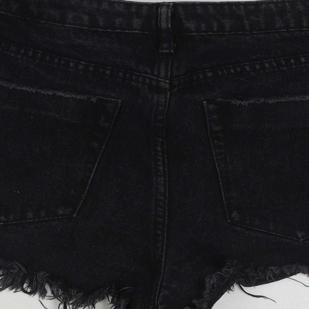 Womens Black Cotton Hot Pants Shorts Size S Regular Button - Distressed