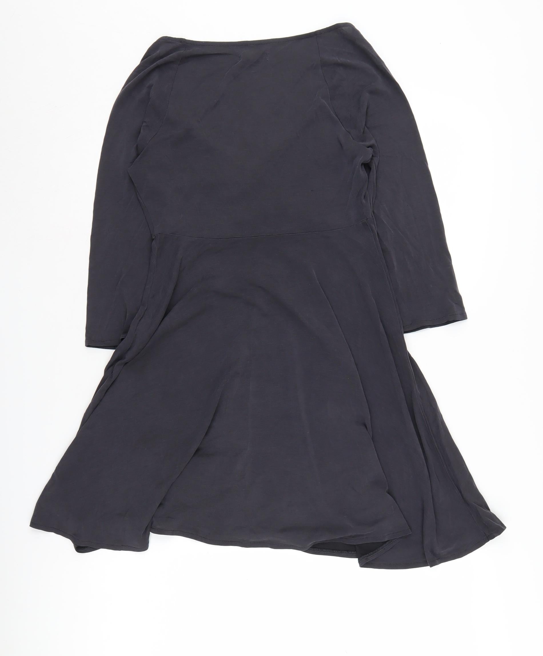 Elevate your wardrobe with this stunning Silence + Noise Women's Black Midi Dress. Designed in a flattering fit and flare style, this dress features a sophisticated V-neckline and comfortable 3/4 sleeves, making it a versatile choice for a range of occasions. The classic black colour makes it a timeless piece that can be dressed up or down for effortless style. Constructed from a soft jersey fabric blend of modal and polyester, this dress ensures comfort and a chic silhouette. Its pullover style allows for easy wearing. Although pre-loved, this dress is in excellent condition with only slight wear on the fabric, ensuring you’ll look fabulous at a fraction of the cost. Perfect for everyday wear or special occasions, pair it with your favorite accessories for a polished look. Available in a medium size, this dress is a must-have staple for your collection.