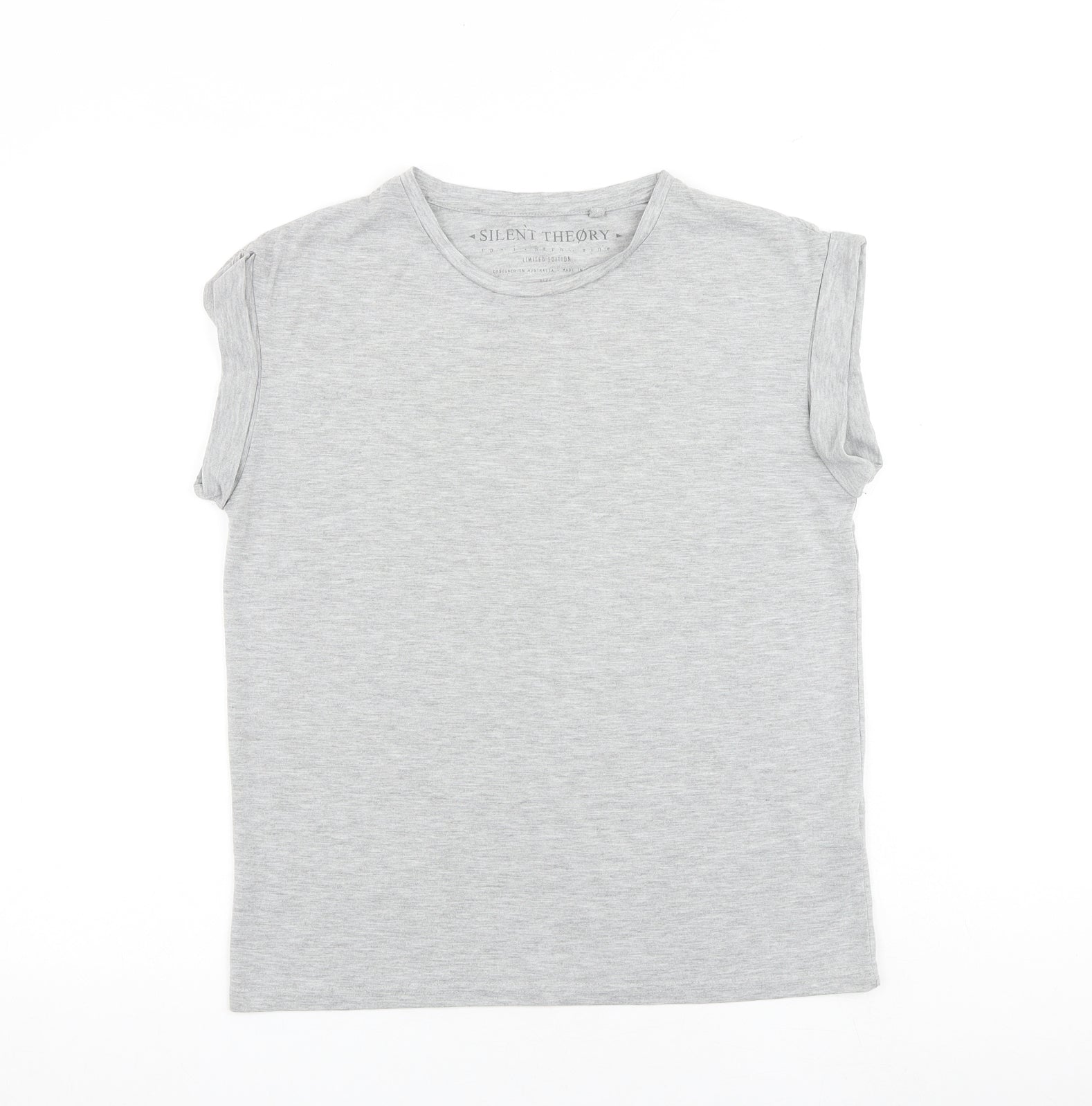 Womens Grey Cotton Basic T-Shirt Size 8 Round Neck