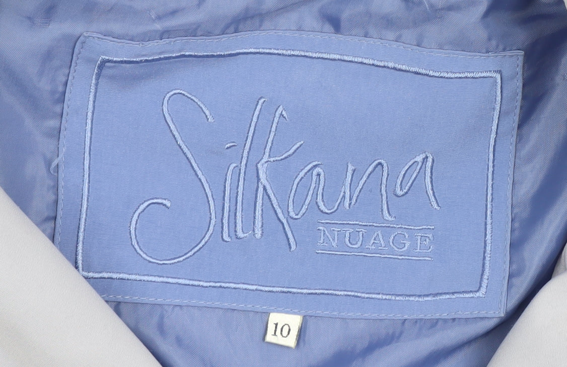 Introduce timeless elegance and functional style into your wardrobe with this beautiful light blue jacket from Silkana Nuage. Crafted from a durable 100% polyester outer shell with a smooth polyester lining, the jacket offers both durability and a touch of sophistication. Its design features a flattering fit with a drawstring waist that allows you to adjust the shape, enhancing the feminine silhouette while providing comfort and confidence in any weather.Perfect for trans-seasonal wear, this jacket’s lightweight yet protective outer layer is ideal for spring showers or breezy autumn days. The piece comes with a double-breasted front, secured by smart button fastenings that not only add visual interest but also deliver practical fastening options. The hood offers additional protection against the elements, making this piece a smart blend of fashion and function. Pockets add everyday convenience, making it suitable for errands, travel, or casual outings.The jacket’s soft periwinkle blue shade brings a subtle pop of colour that complements most outfits, while the polished buttons lend a hint of classic charm. The combination of breathable material and clean tailoring ensures that it stays a staple for any wardrobe. Designed for women who appreciate quality and versatility, this Silkana Nuage jacket transitions seamlessly from casual wear to smart outdoor attire. Pair it with jeans for a laid-back look or layer it over dresses for an elegant off-duty finish.In excellent condition with minimal signs of gentle wear, this jacket represents great value for a premium garment. Explore both comfort and contemporary elegance with this Silkana Nuage creation – a must-have for the modern woman who values practicality and understated sophistication.