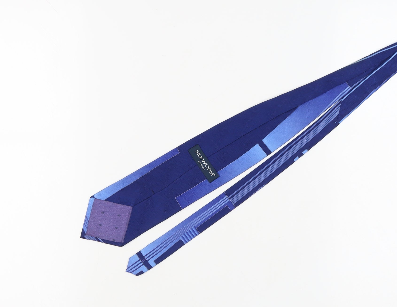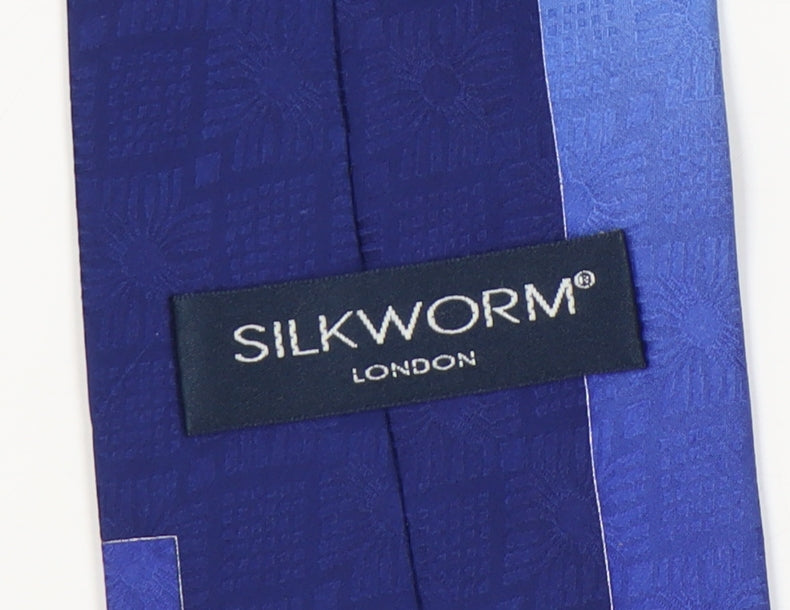 Elevate your formal attire with this exquisite Silkworm men's tie. Crafted from 100% silk, this handmade accessory showcases a striking blue geometric pattern that is sure to turn heads at any event. Perfect for adding a touch of sophistication to business or casual ensembles, this tie is both versatile and stylish. Made for men with a keen eye for fashion, the luxurious silk material ensures a smooth texture and a polished finish. Whether it's a business meeting or a special occasion, this Silkworm tie is an essential addition to your wardrobe. Available brand new with tags, it promises flawless quality and unmatched style at an irresistible price.