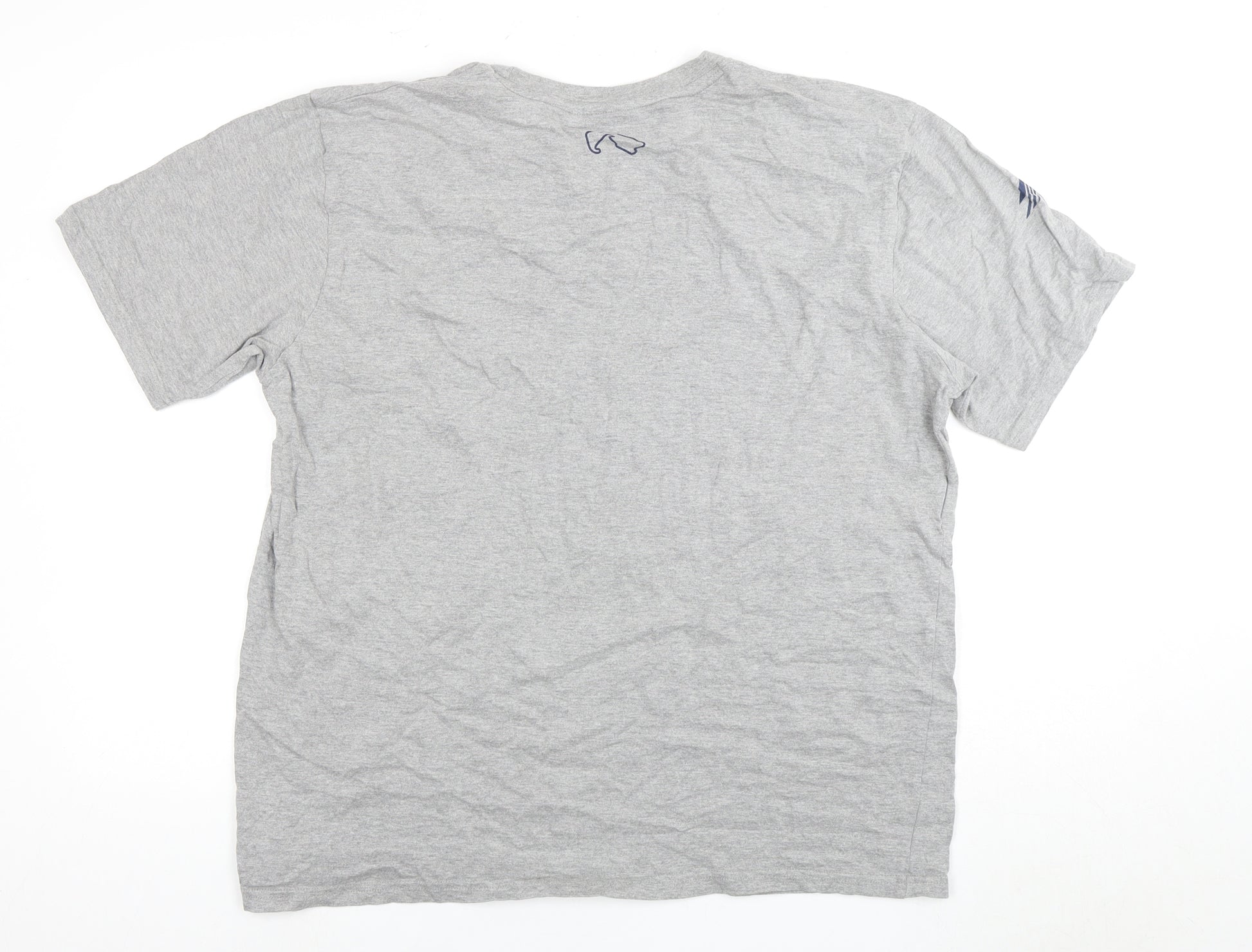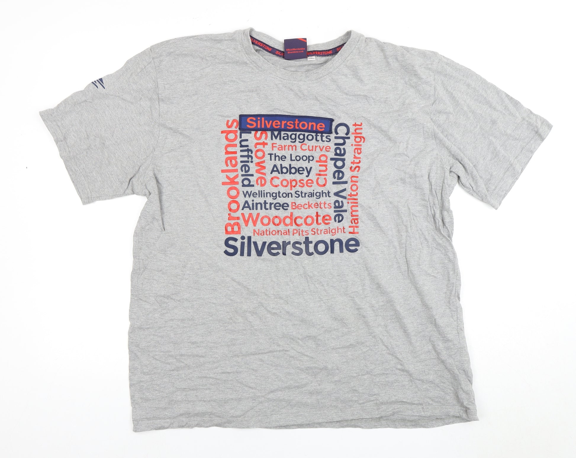 Embrace the spirit of racing with this stylish Silverstone Men's Grey Graphic T-Shirt. Designed for enthusiasts, it features a bold graphic print that highlights key track locations, making it perfect for any motorsport fan. Crafted from a comfortable blend of 85% cotton and 15% polyester, this short-sleeve crew neck tee offers a soft and breathable fit for all-day wear. Its regular size in 2XL ensures a relaxed and flattering look. This versatile T-shirt fits seamlessly into your casual wardrobe and can be paired with jeans or shorts for a laid-back vibe. Ideal for everyday wear, whether you're heading to a race or enjoying a weekend outing. Though it shows slight wear, it remains in excellent condition without any original sales tags. Capture the essence of the track with this unique Silverstone tee.