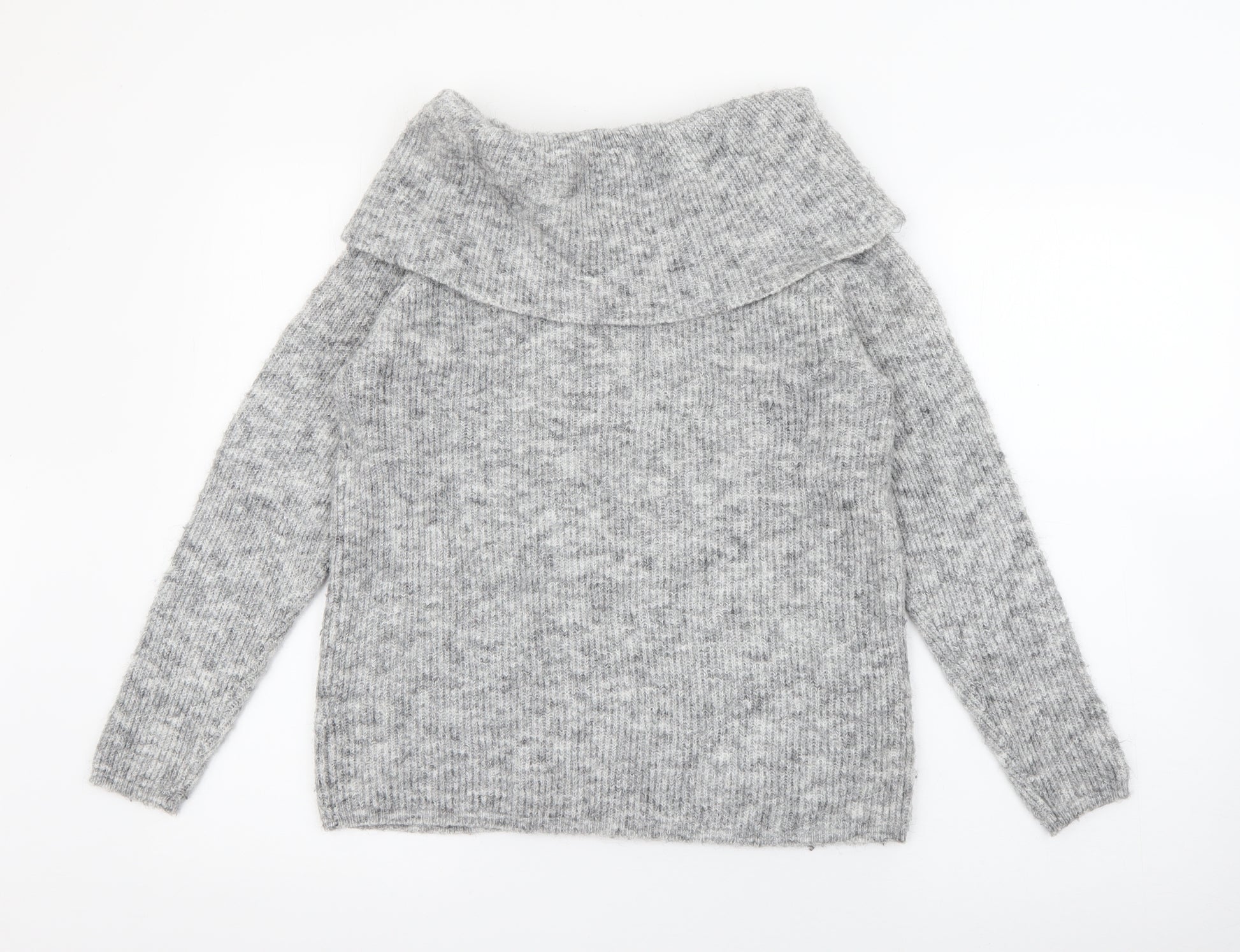 Womens Grey Roll Neck Polyester Pullover Jumper Size M