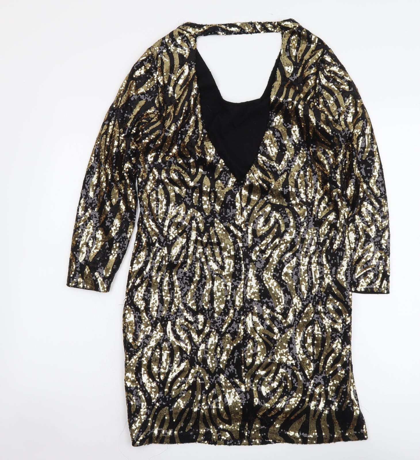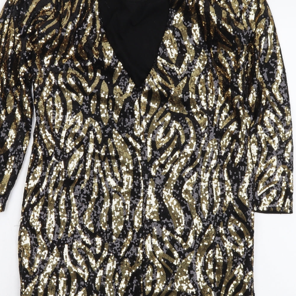Womens Gold Geometric Polyester Sheath Size M Scoop Neck Pullover
