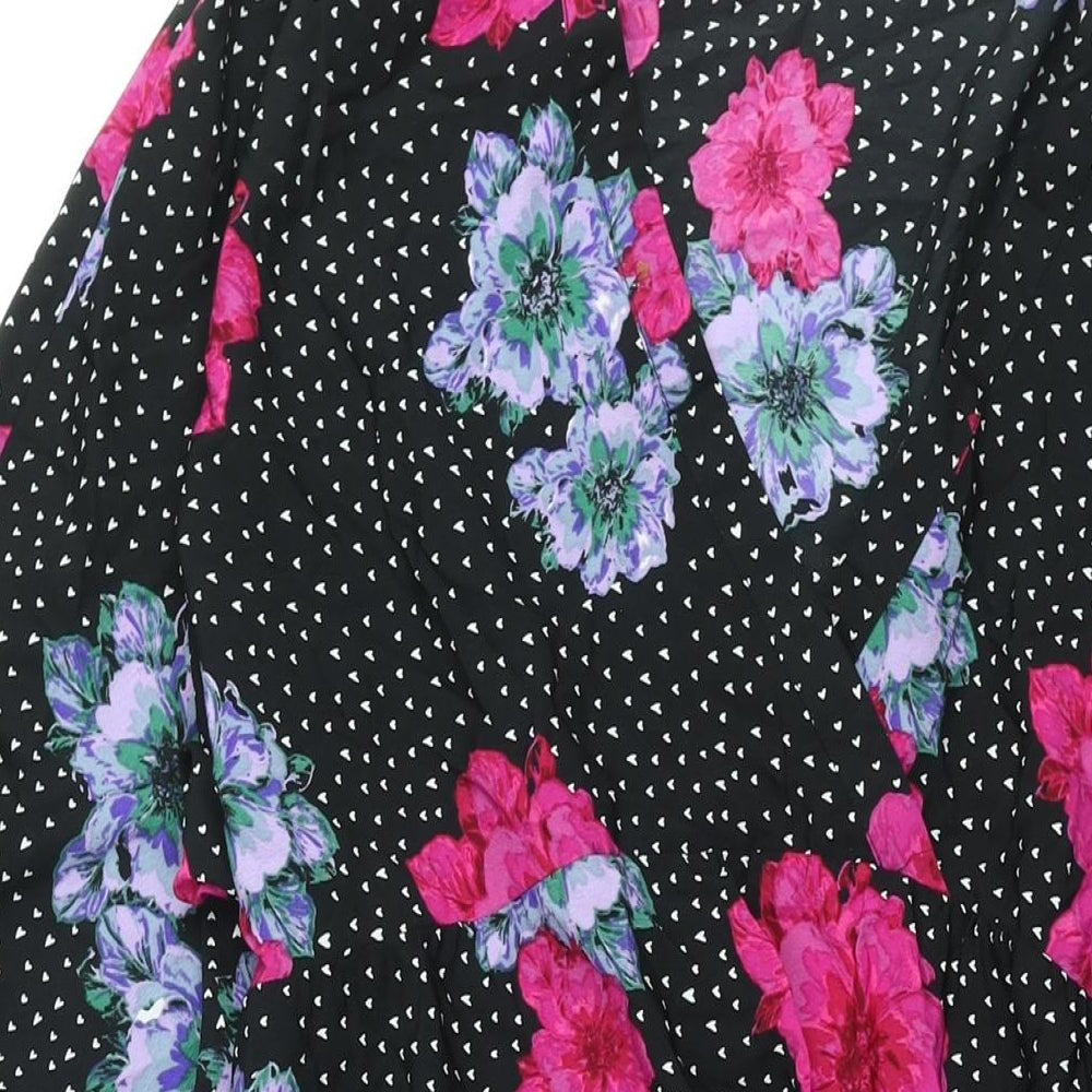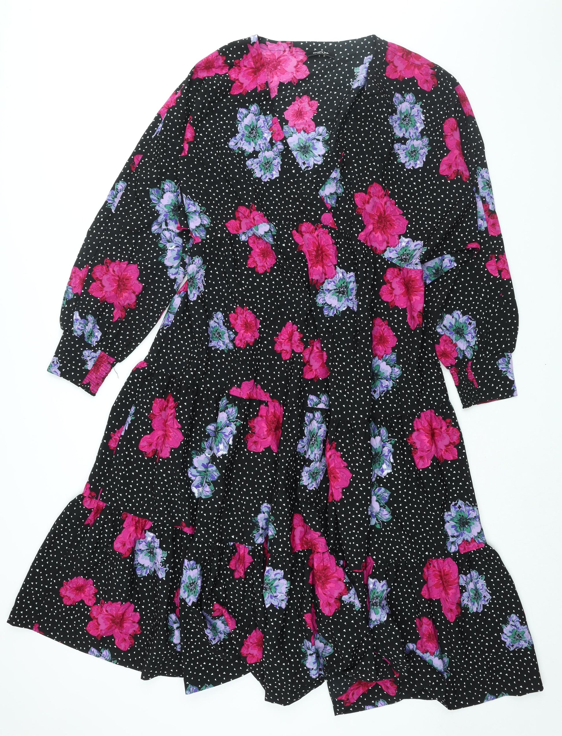 Womens Black Floral Polyester Shift Size 16 V-Neck Pullover - Smocked