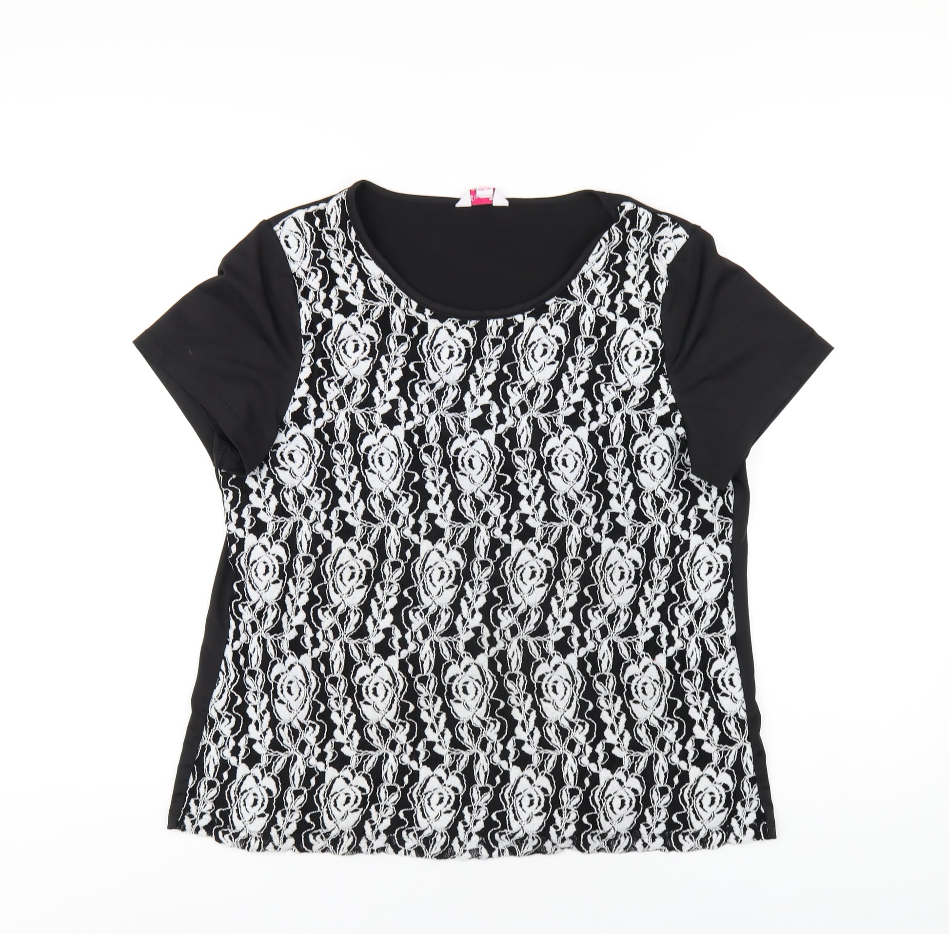 Womens Black Polyester Basic T-Shirt Size 16 Round Neck