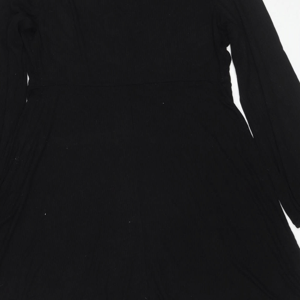 Womens Black Viscose Jumper Dress Size 16 V-Neck Pullover