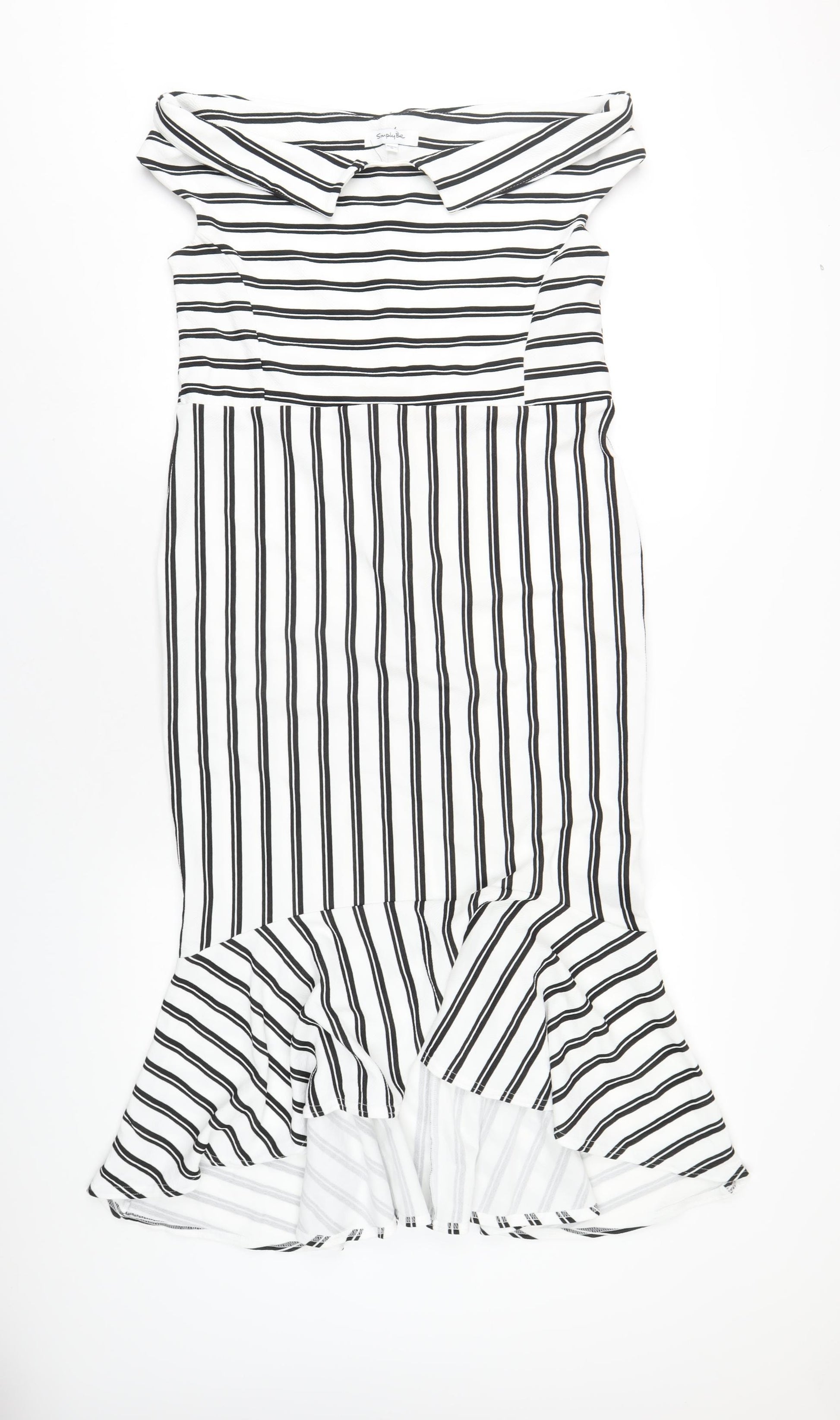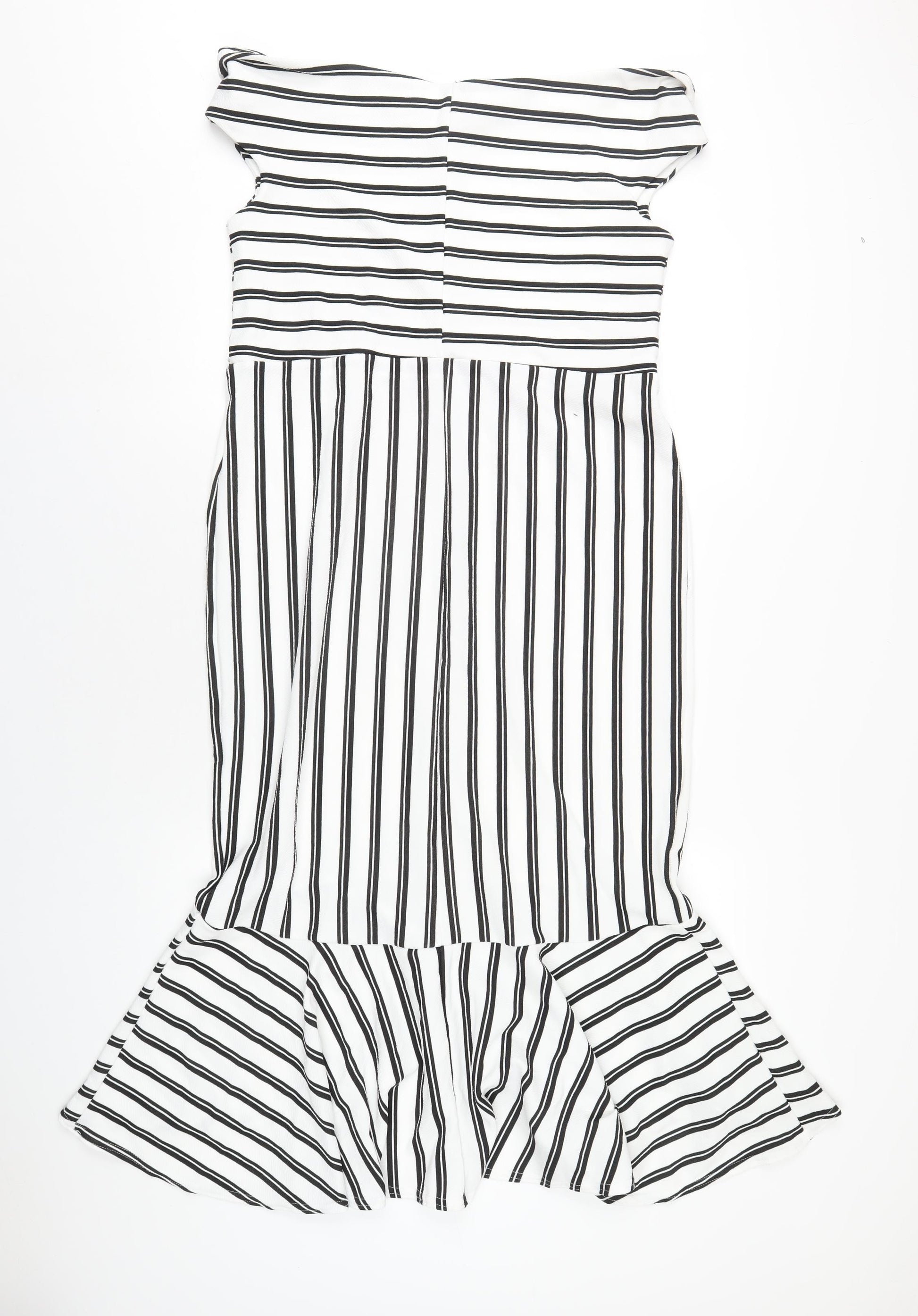 Womens White Striped Polyester A-Line Size 18 Off the Shoulder Pullover