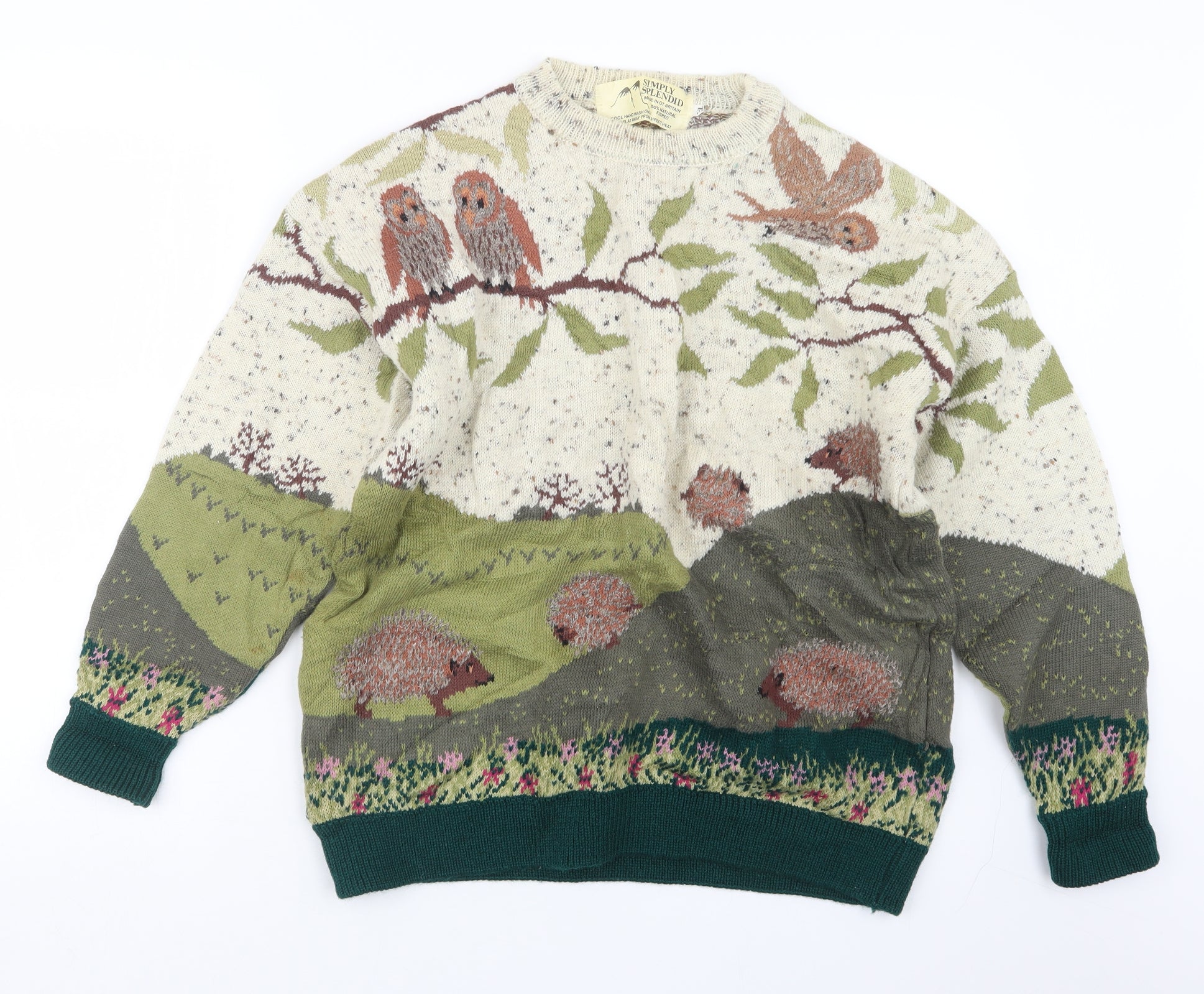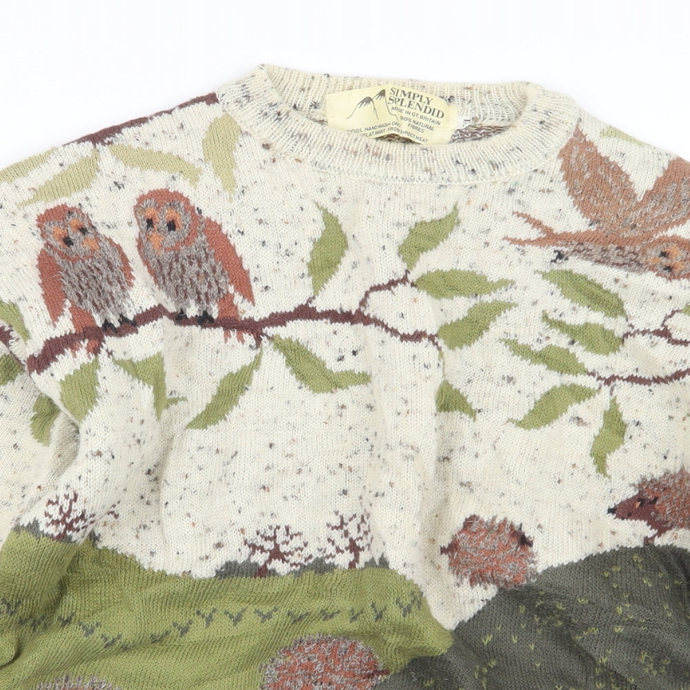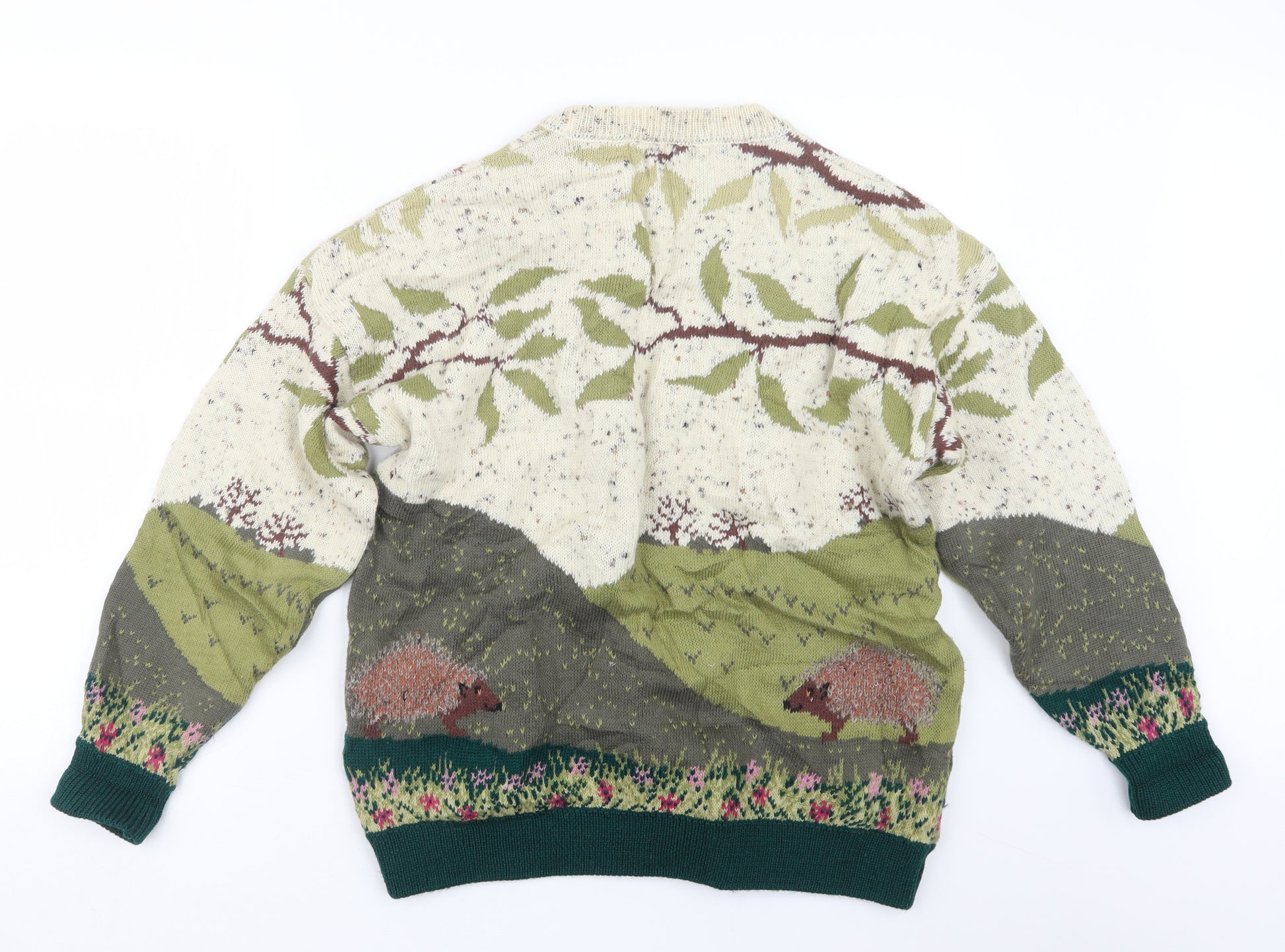 Womens Green Geometric Knit Pullover Jumper Size XL