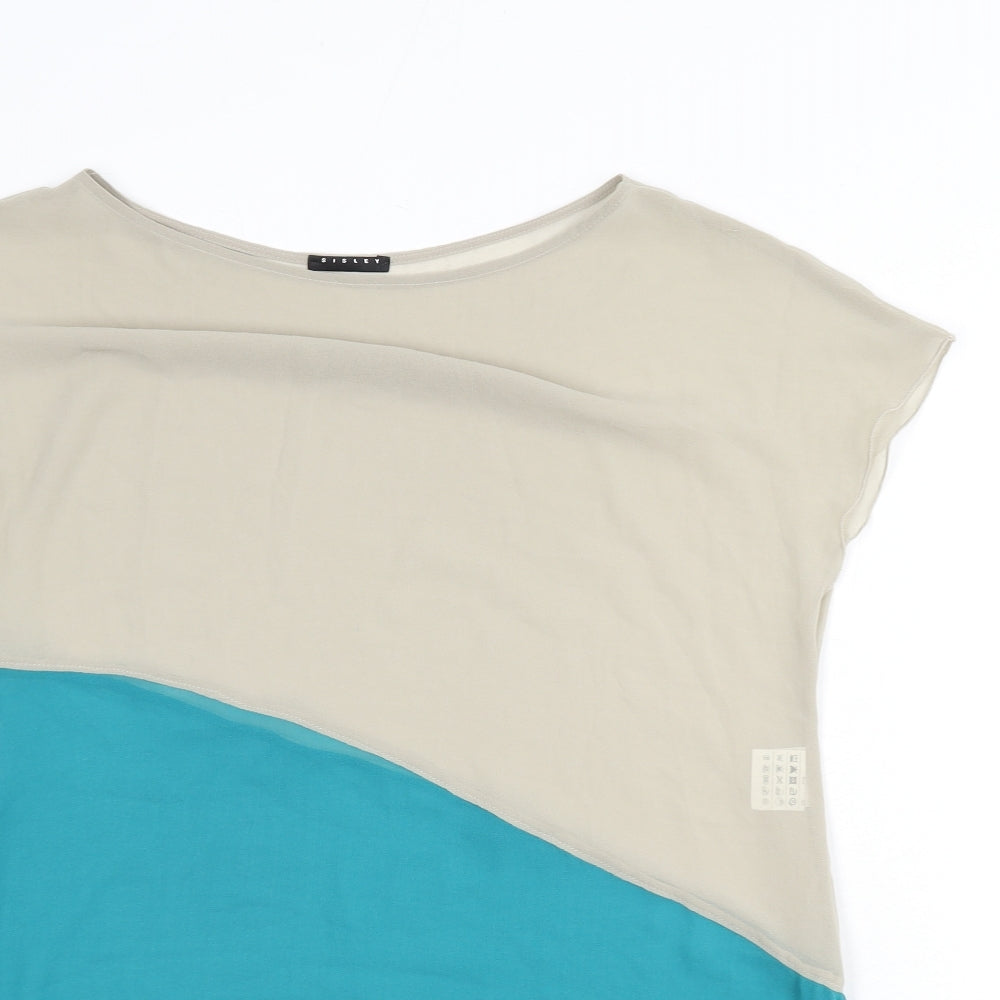 Womens Beige Polyester Tunic Blouse Size S Round Neck - Split Colour