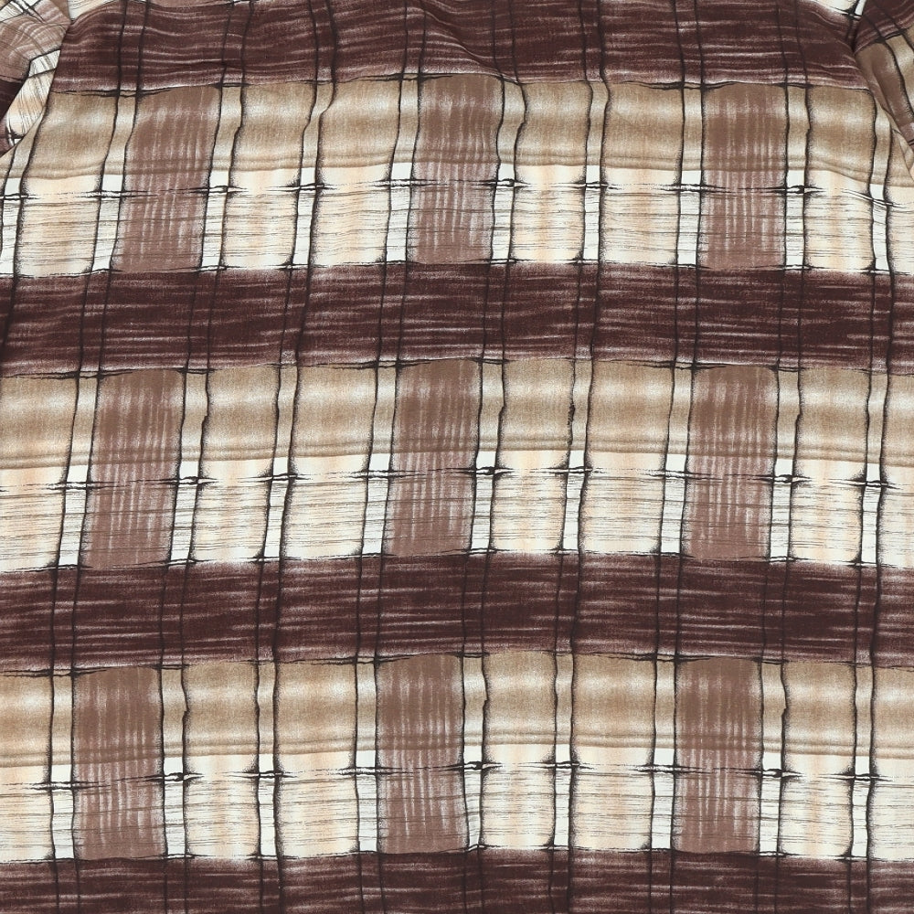 Womens Brown Check Polyester Basic Button-Up Size 16 Collared