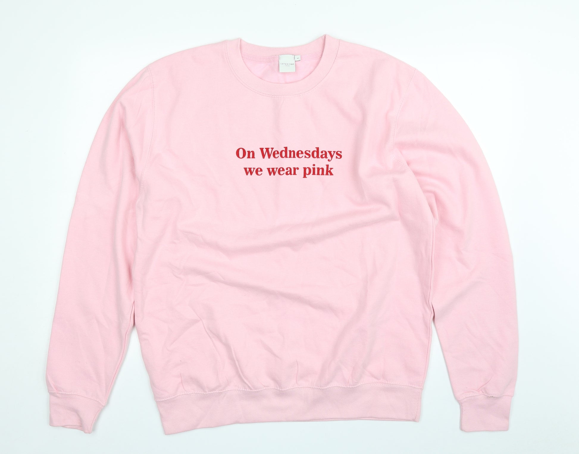 Womens Pink Cotton Pullover Sweatshirt Size L Pullover - On Wednesdays We wear Pink
