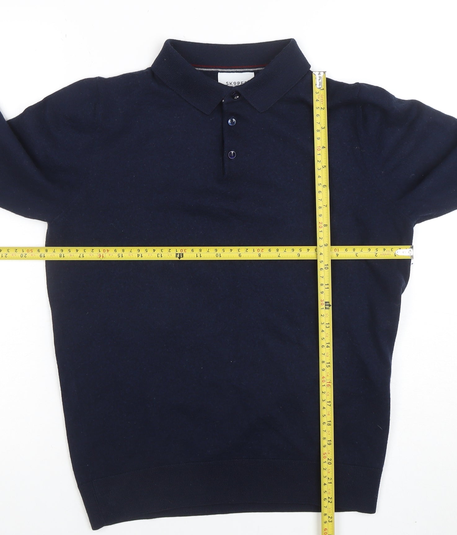 This elegant Skopes men’s long sleeve polo is the perfect addition to any sophisticated casual wardrobe. Crafted in a fine wool and acrylic blend, it provides a balanced combination of warmth, softness, and durability. The deep blue colour offers a timeless and versatile look that pairs easily with jeans, chinos, or tailored trousers, making it ideal for smart-casual occasions or evenings out. The collared neckline and button placket lend a polished and classic appearance, while ribbed cuffs and hem ensure a flattering and comfortable fit. Designed in a regular fit, this polo jumper offers an easy, relaxed wear without compromising on shape or style. The lightweight knit makes it suitable for layering during the cooler months or wearing on its own during transitional seasons such as autumn or spring. With subtle logo detailing and quality textile craftsmanship, this Skopes polo demonstrates the brand’s commitment to refined menswear style and comfort. Machine washable for ease of care, it’s a fuss-free choice for the modern man seeking a blend of practicality and refinement. Whether dressed up with trousers for a neat dinner look or more casually with denim, this jumper’s versatility and understated elegance make it a wardrobe staple. The wool-acrylic blend ensures breathability and long-lasting wearability. Perfect for weekend wear, office casual settings, or relaxed social gatherings, it maintains a polished yet comfortable appearance. In excellent pre-owned condition with very light general wear, this high-quality piece delivers both style and value. A smart choice for the discerning man who appreciates timeless design and comfort — an item that will enhance any wardrobe through all cool-weather seasons, offering effortless sophistication in every wear.