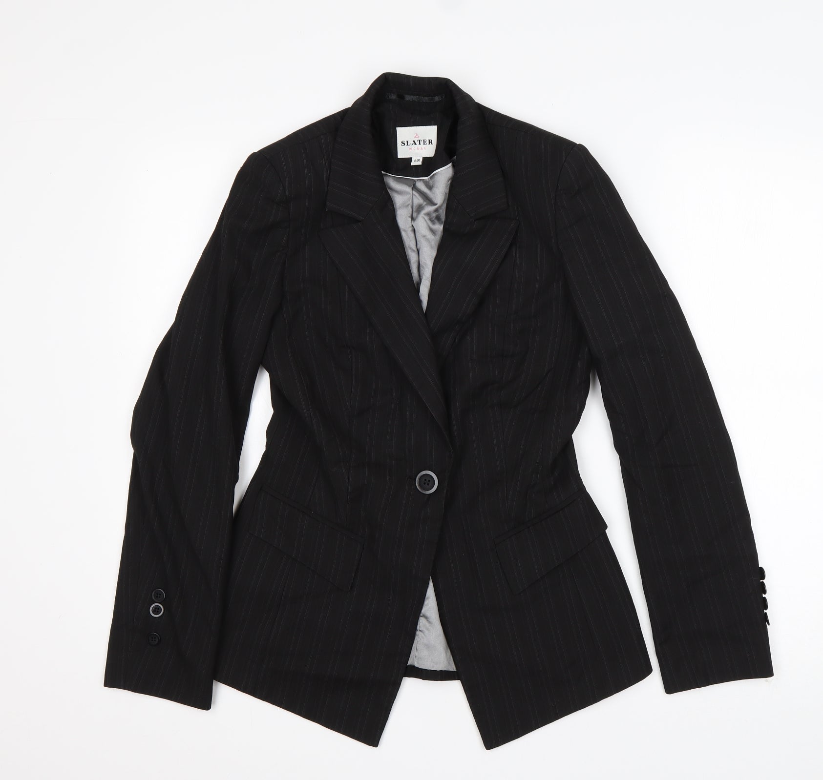 Womens Black Striped Polyester Jacket Suit Jacket Size 6