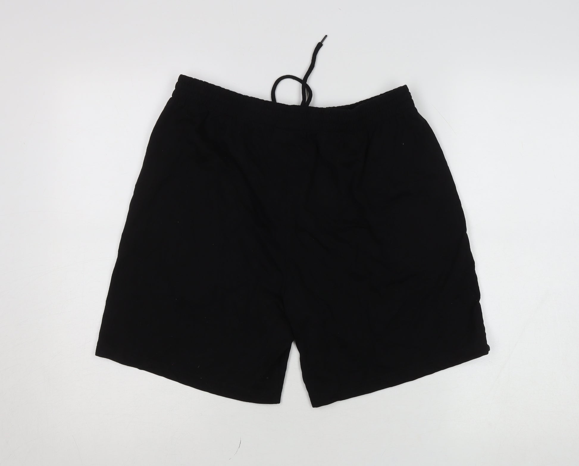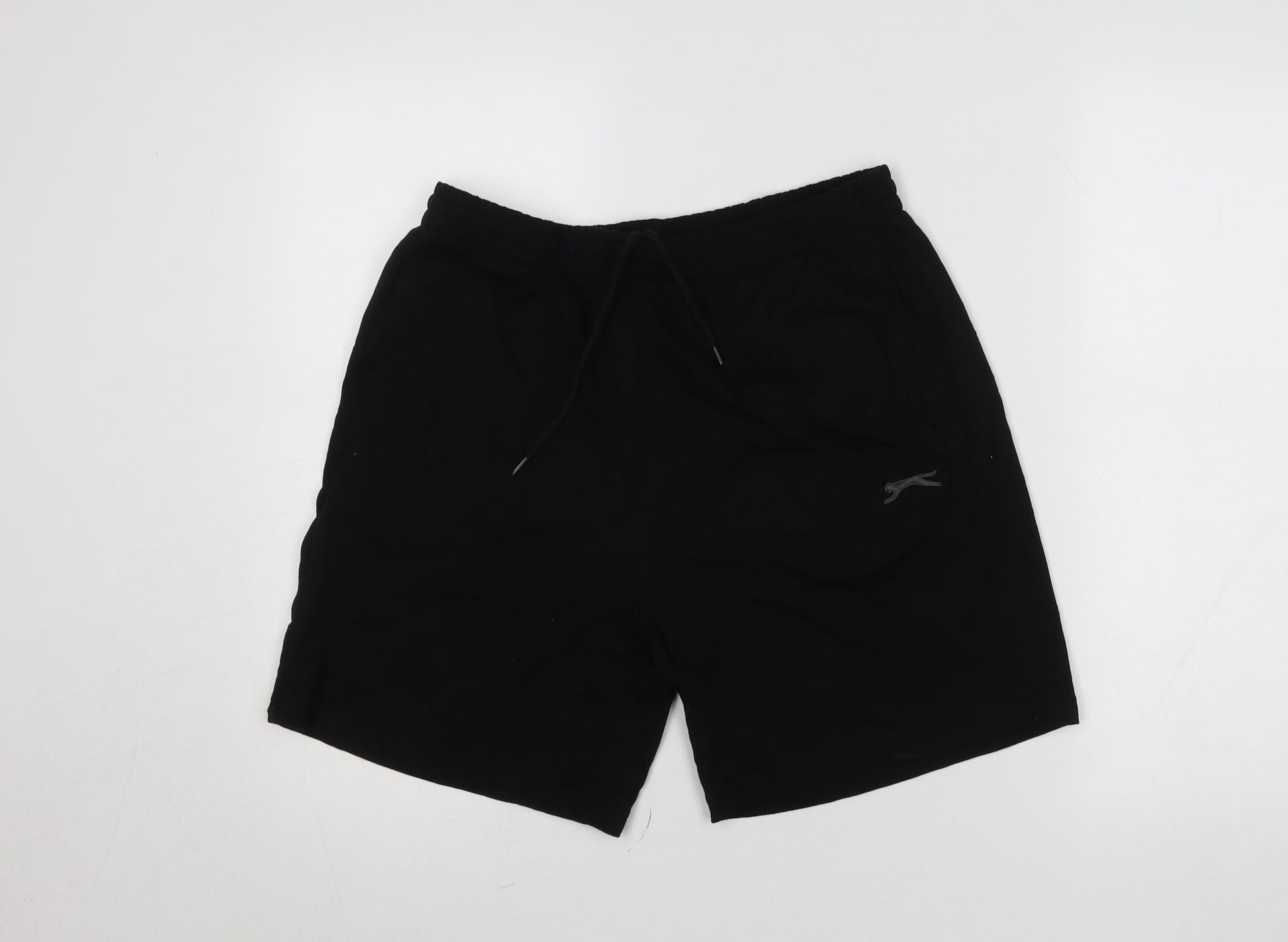 These Slazenger men’s black sweat shorts are the perfect choice for relaxed comfort and practical everyday wear. Crafted from a soft and breathable blend of cotton and polyester, these shorts offer a comfortable and durable fit that makes them ideal for casual outings, lounging, gym workouts, or sports activities. The lightweight jersey fabric ensures ease of movement, while the elastic waistband with adjustable drawstring provides a secure and personalised fit. These shorts feature convenient slash pockets, perfect for storing small essentials such as keys or your phone, and the subtle Slazenger logo accent adds a touch of classic sporty style. Designed in a regular fit with a mid-rise waist, these shorts provide a modern silhouette that combines both function and fashion. The timeless black colour makes them versatile to pair with any top, whether you’re heading to the gym, chilling at home, or enjoying a warm-weather walk. Made for comfort and performance, they are machine washable for easy care, ensuring long-lasting quality and wear. Ideal for spring and summer seasons, these shorts suit any casual or sporty occasion. In very good pre-owned condition with minimal signs of wear, they are an affordable way to add reliable athletic wear to your wardrobe. Blend effortless comfort with clean athletic styling in these dependable Slazenger shorts – perfect for men looking for both practicality and performance in everyday clothing.