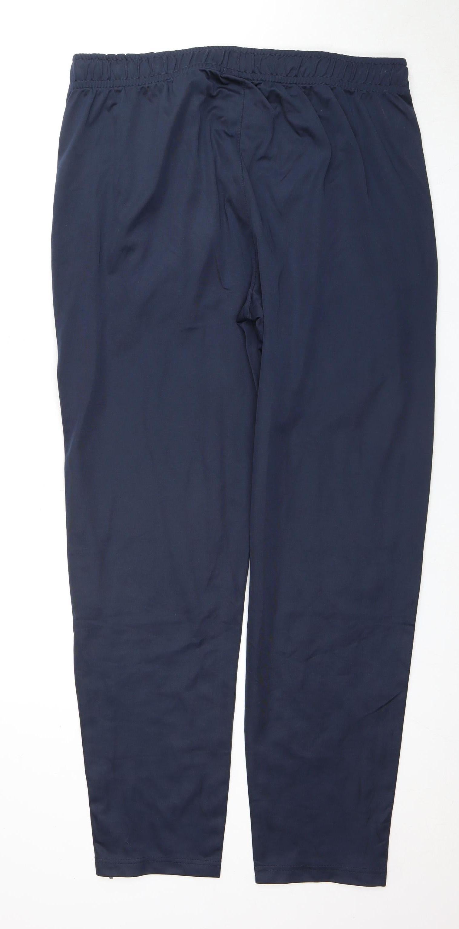 Elevate your athletic wardrobe with these Slazenger Men's Blue Track Pants, designed for ultimate comfort and performance. Perfectly tailored for the modern man, these trousers feature a regular fit and an elastic waist, ensuring ease of movement whether you're hitting the gym or going for a jog. The vibrant blue polyester fabric is both durable and stylish, making these trousers a versatile addition to your activewear collection. Ideal for gym & training sessions, as well as running and jogging, the pants offer a simple yet functional design. With no discernible pattern and a straight leg style, they exude a sleek look that pairs well with almost any top. Thoughtfully crafted with machine washable material, maintaining the pristine condition of these trousers is hassle-free. Although pre-owned, they remain in very good condition with only minor marks, giving you great quality at an affordable price. A sports theme ties them together, making these track pants not just a practical choice, but also a statement of style. Comfortable, versatile, and functional—what more could you ask for in activewear?