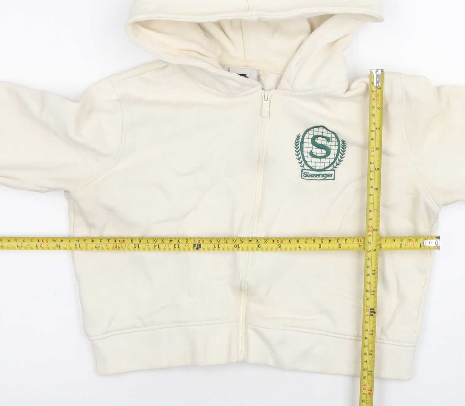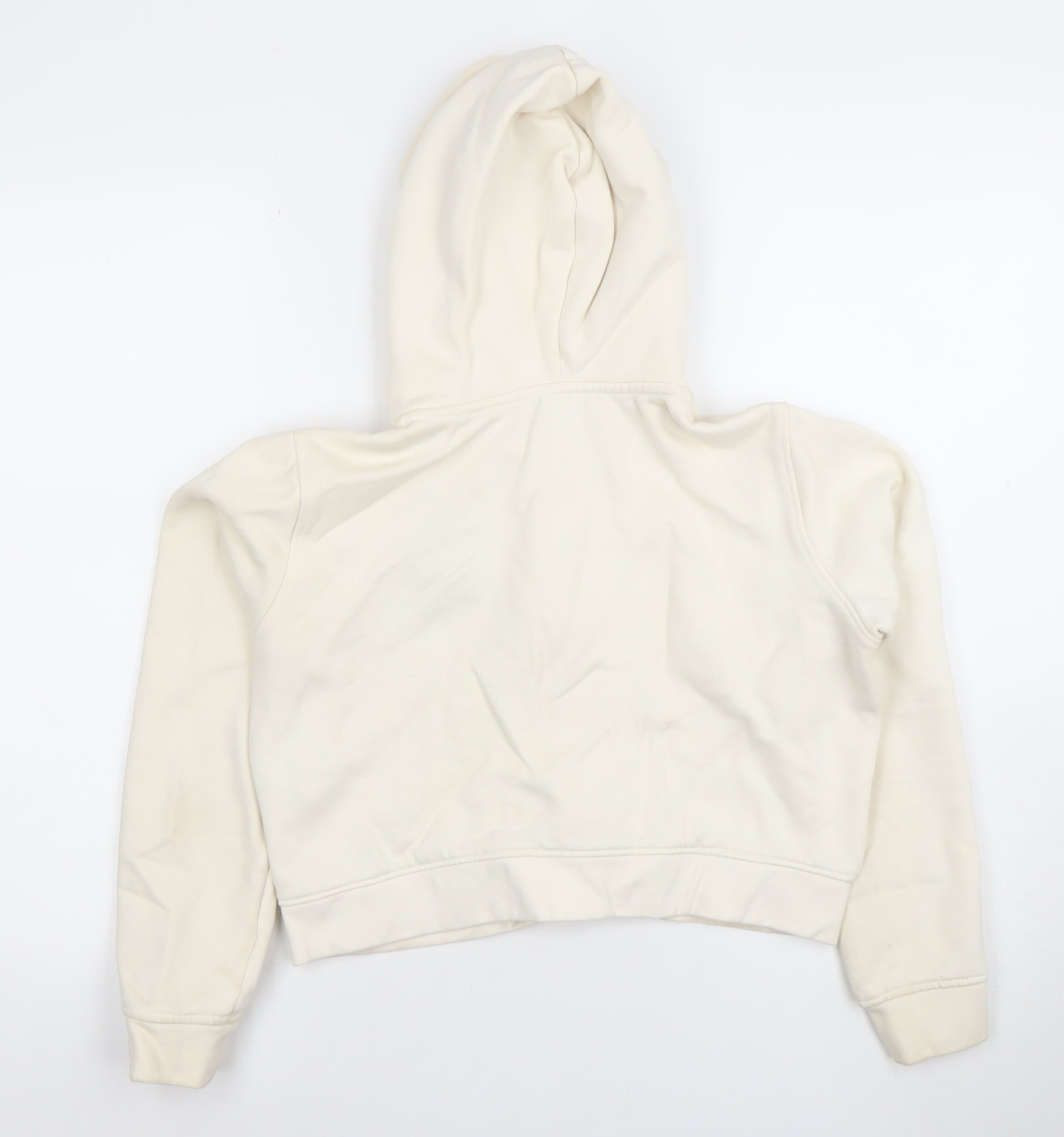 Women Ivory Full Zip Hoodie UK 10 Cotton Blend Embroidered Logo