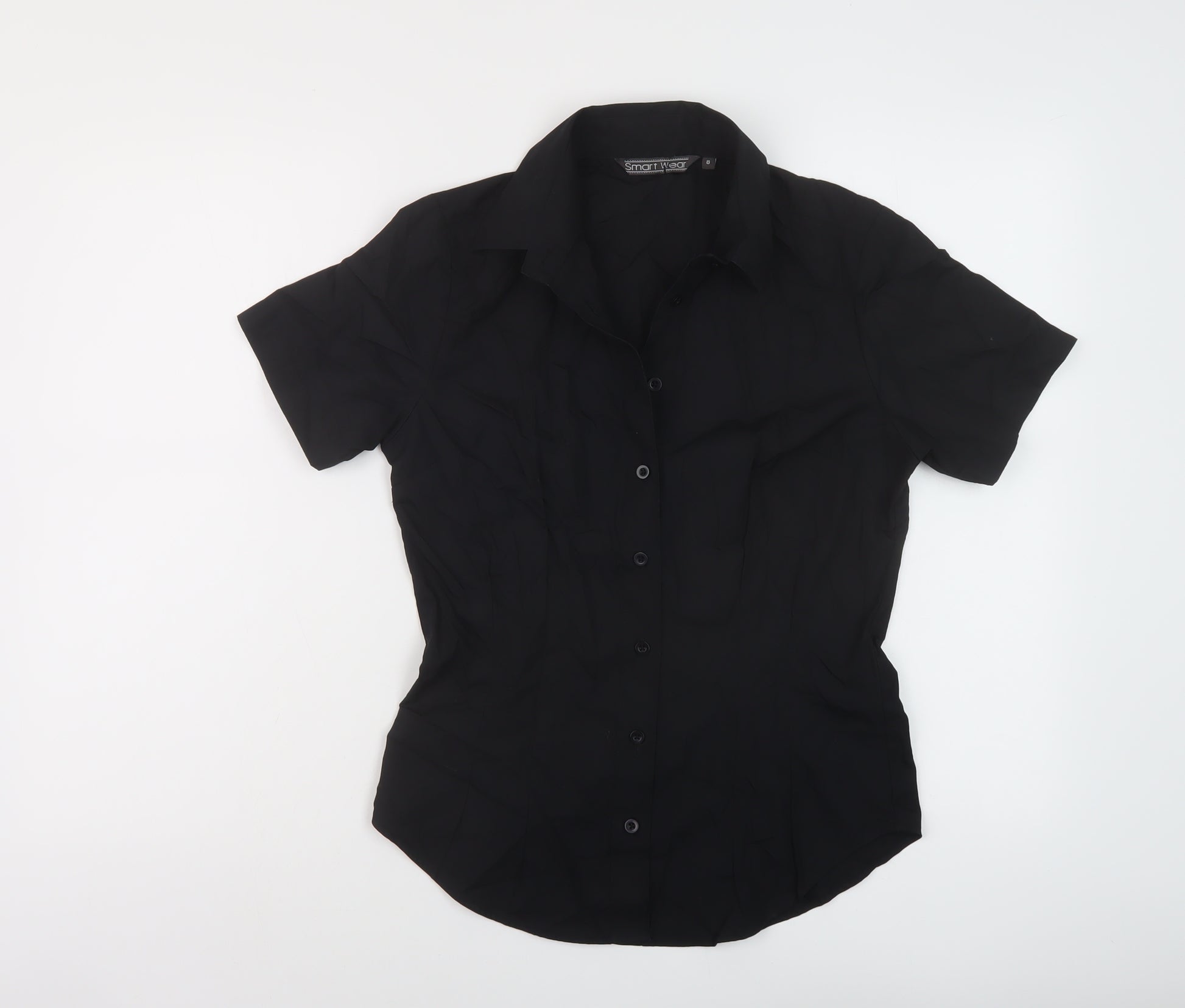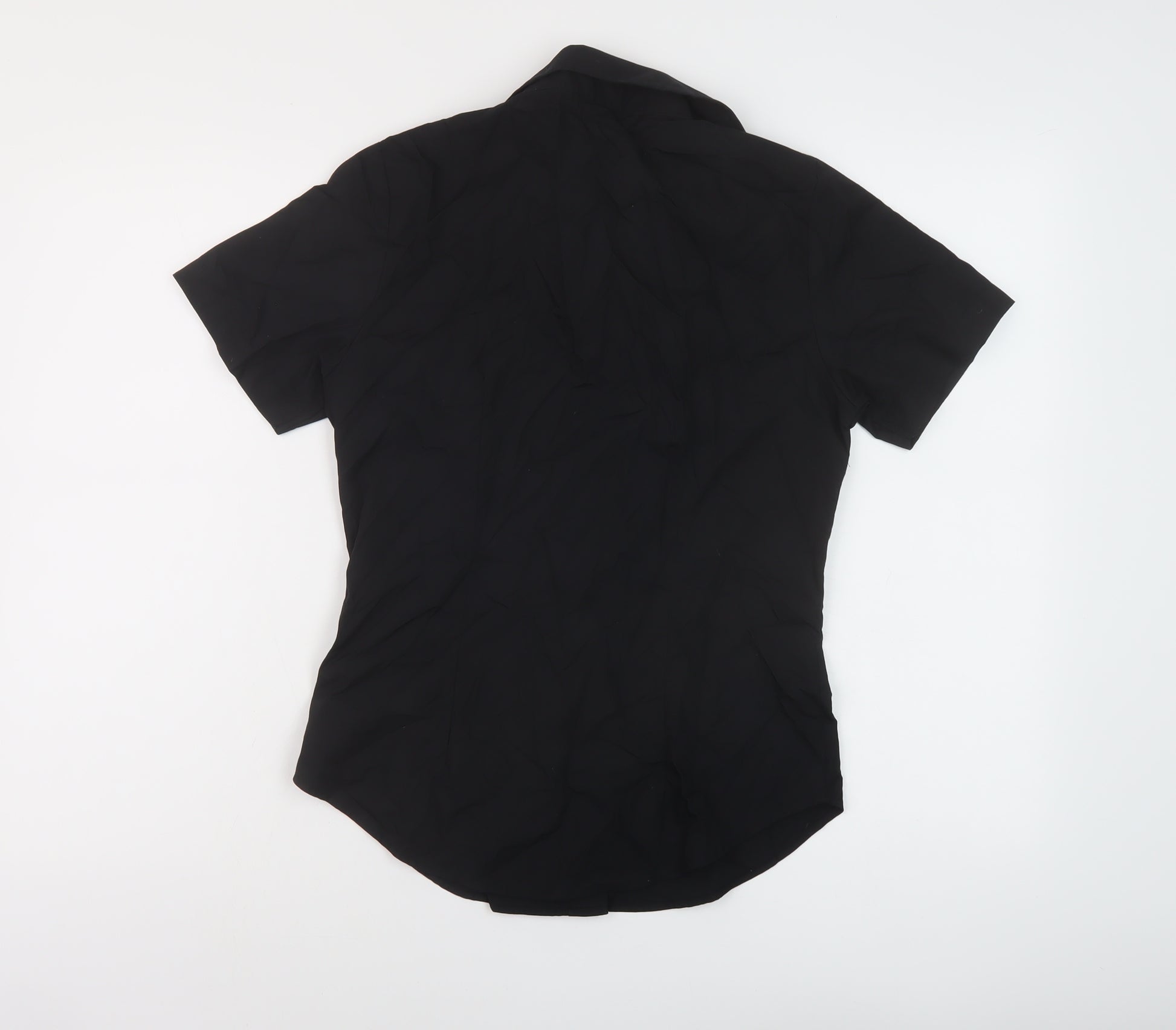 Womens Black Polyester Basic Button-Up Size 8 Collared