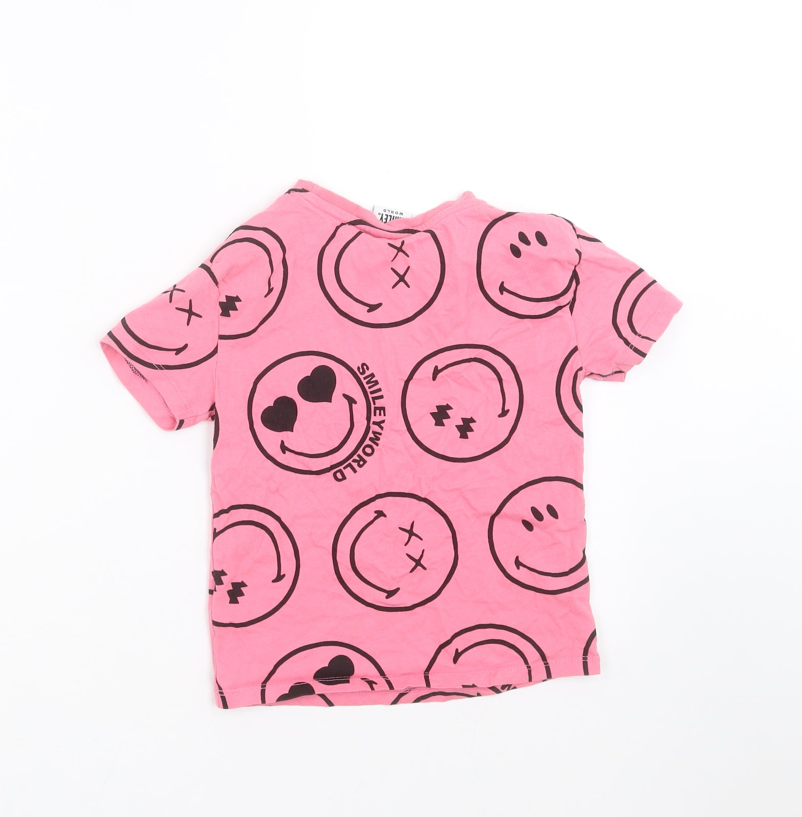 Girls Pink Basic T-Shirt Size 4-5 Years - Smiley face