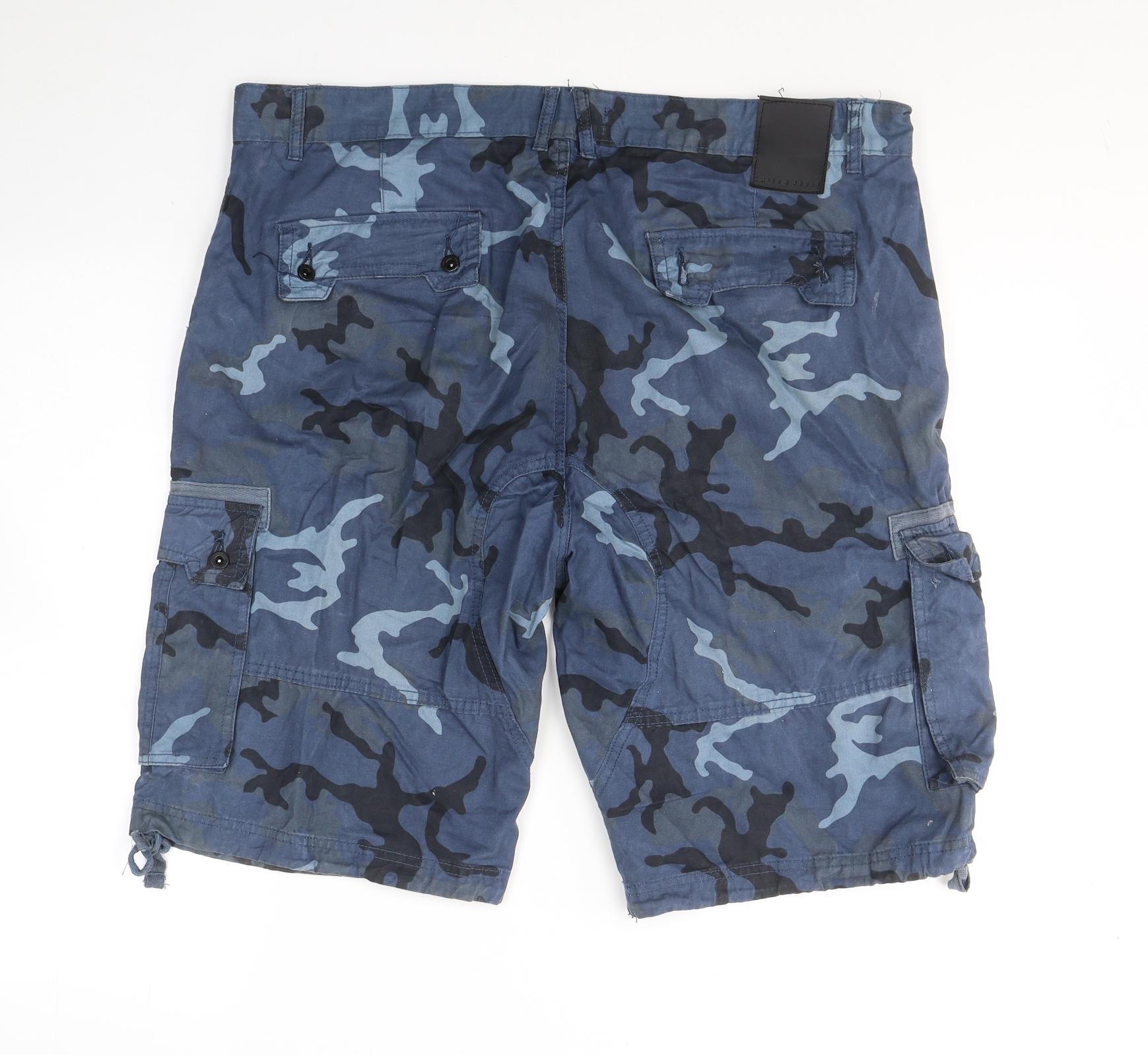Mens Blue Camouflage Cotton Cargo Shorts Size 38 L11 in Regular Button