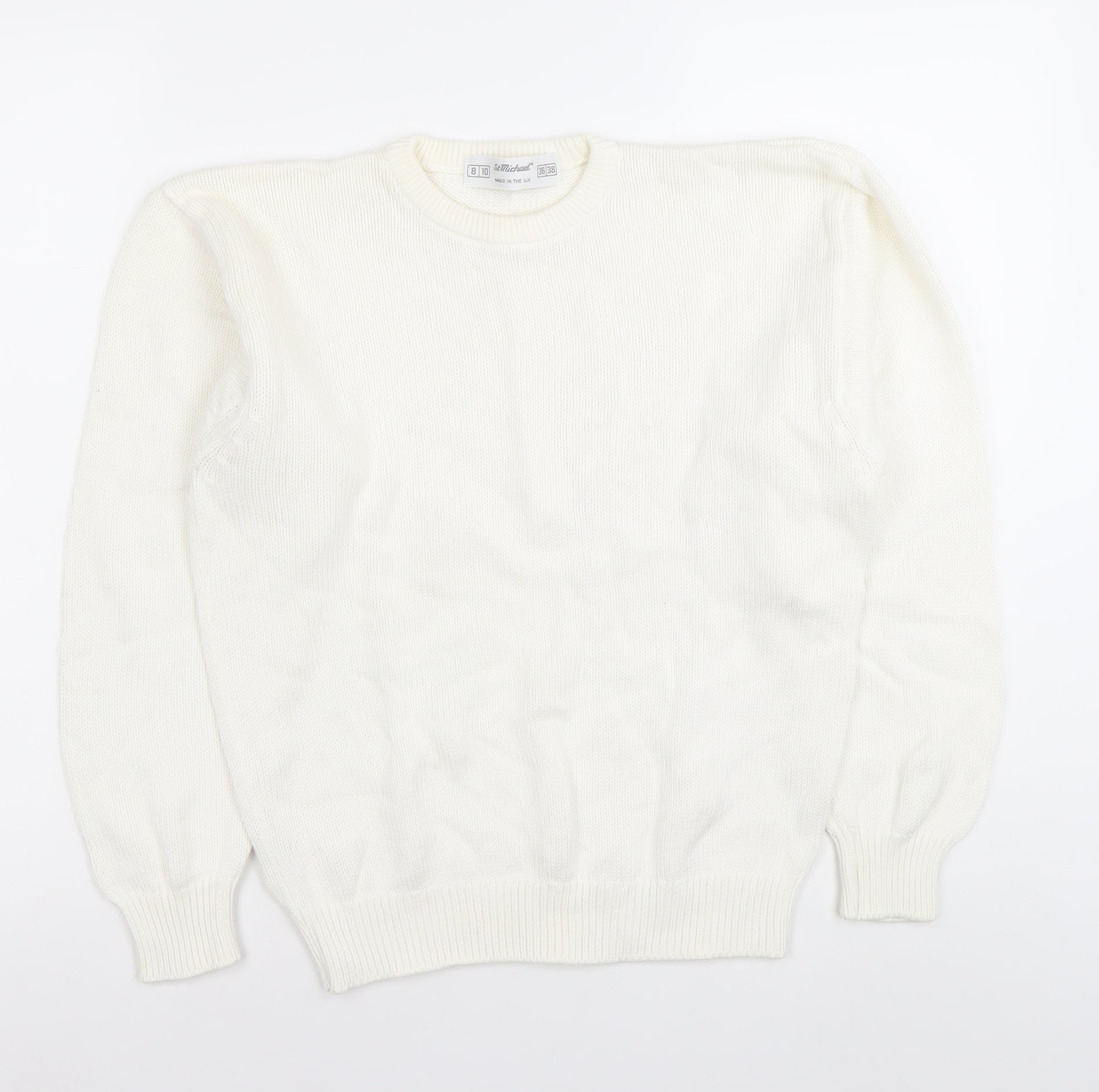 Elevate your casual wardrobe with this classic Smithland women's jumper, crafted in the UK from 100% pure cotton for exceptional comfort and breathability. Designed in a timeless crisp white shade, this versatile pullover is perfect for layering across the transitional seasons and staying cosy during the cooler months. The crew neckline offers a clean, understated look while the long sleeves and ribbed cuffs ensure a snug fit that retains warmth without compromising on style. Made with a tight-knit cotton construction, this jumper provides both durability and softness, making it a reliable go-to option for daily wear. Falling in a flattering regular fit, it suits a variety of body shapes and is available here in a UK size 8, ideal for wearing alone with jeans or under a smart coat for a more dressed-up feel. Its plain, no-pattern design makes it highly versatile, effortlessly pairing with patterned or plain bottoms alike. The breathable cotton fabric ensures comfort throughout the day whether you are spending time at home, stepping out for a casual coffee, or wrapping up for an autumn stroll. Easy to care for, this jumper is machine washable, making it as practical as it is stylish. In excellent pre-loved condition, it shows only light wear with no visible marks or damage, offering fantastic quality at an affordable price. Whether you’re refreshing your essentials or searching for a reliable layering piece, this Smithland crew neck jumper delivers timeless appeal and year-round wardrobe mileage.