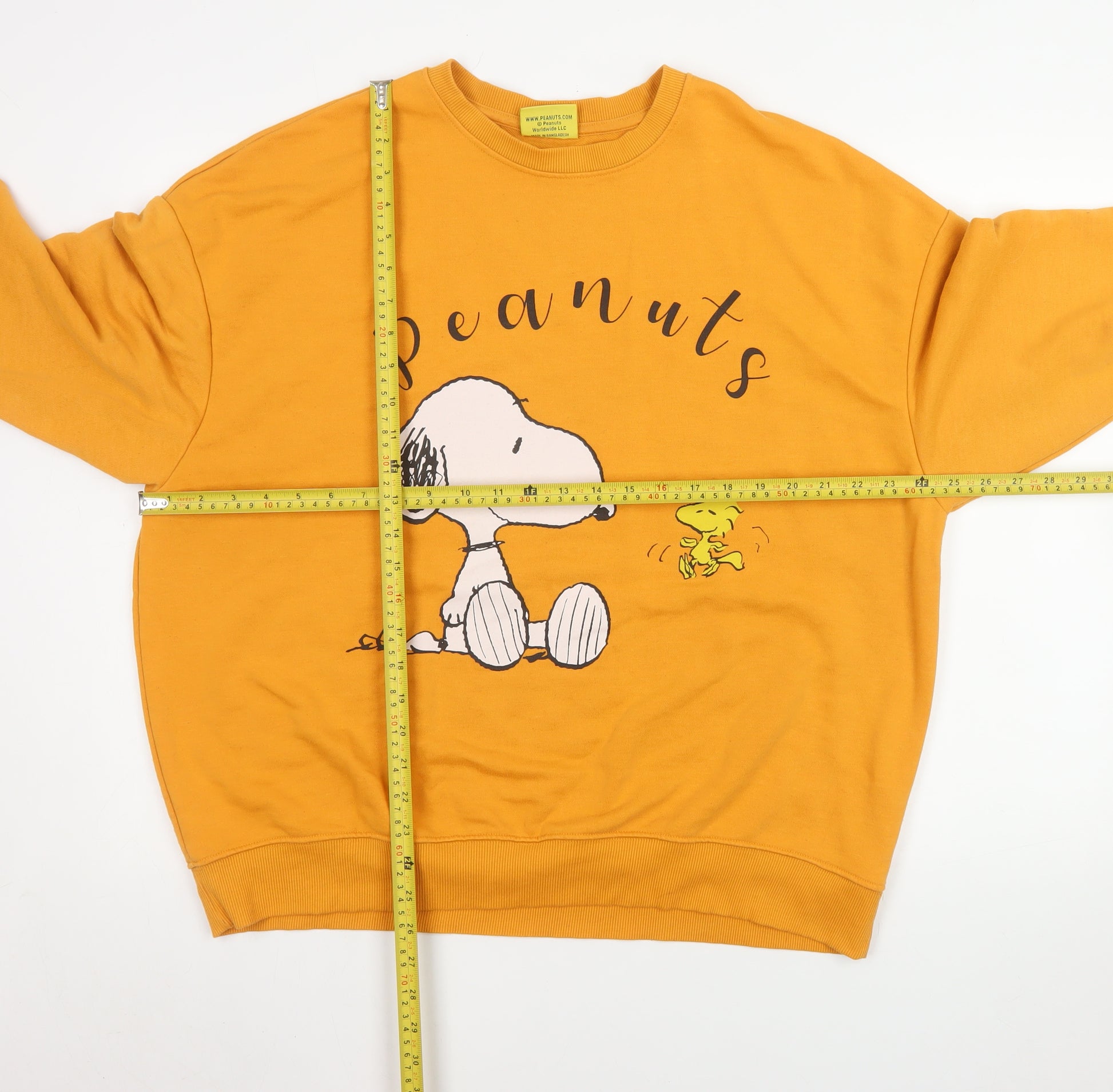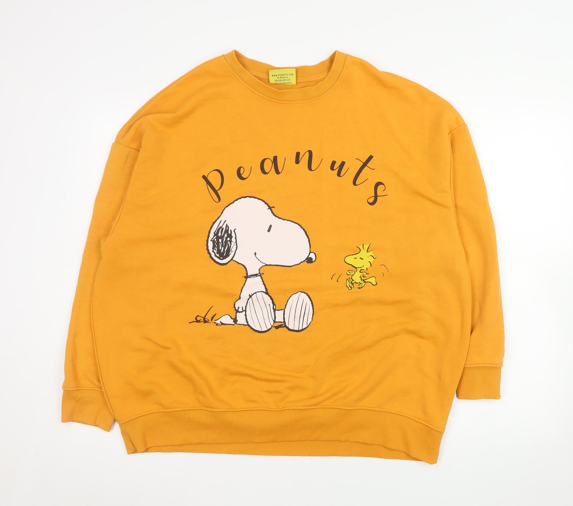 Add a playful and stylish touch to your casual wardrobe with this Snoopy Peanuts mustard yellow sweatshirt. Perfectly crafted for comfort and charm, this pullover design features a relaxed fit suitable for everyday wear. Made from a soft blend of 65% polyester and 35% cotton, the sweatshirt ensures warmth and durability while maintaining a lightweight and breathable feel. The vibrant mustard hue adds a bold pop of colour that complements a wide range of outfits, making it a versatile addition to your wardrobe.Featuring a classic crew neckline and long sleeves with ribbed cuffs and hem, this sweatshirt delivers both comfort and structure. The front showcases an eye-catching Peanuts graphic print of Snoopy and Woodstock, adding playful nostalgia for fans of the beloved cartoon series. Its medium size offers a comfortable fit for women or teens seeking a relaxed but flattering silhouette.Ideal for casual days, lounging at home, or running errands, this pullover pairs effortlessly with jeans, leggings, or joggers. The soft fleece interior lining enhances comfort, while the high-quality materials offer lasting wear. With its cheerful design and easy-care fabric, this sweatshirt brings together practicality and charm. It's perfect for those who appreciate fun, character-inspired clothing with a touch of retro flair.Whether styled alone or layered for cooler seasons, this Snoopy piece is bound to become a go-to favourite. Add this fun sweater to your collection and embrace a hint of childhood nostalgia with timeless comfort and a vibrant design that stands out wherever you go.