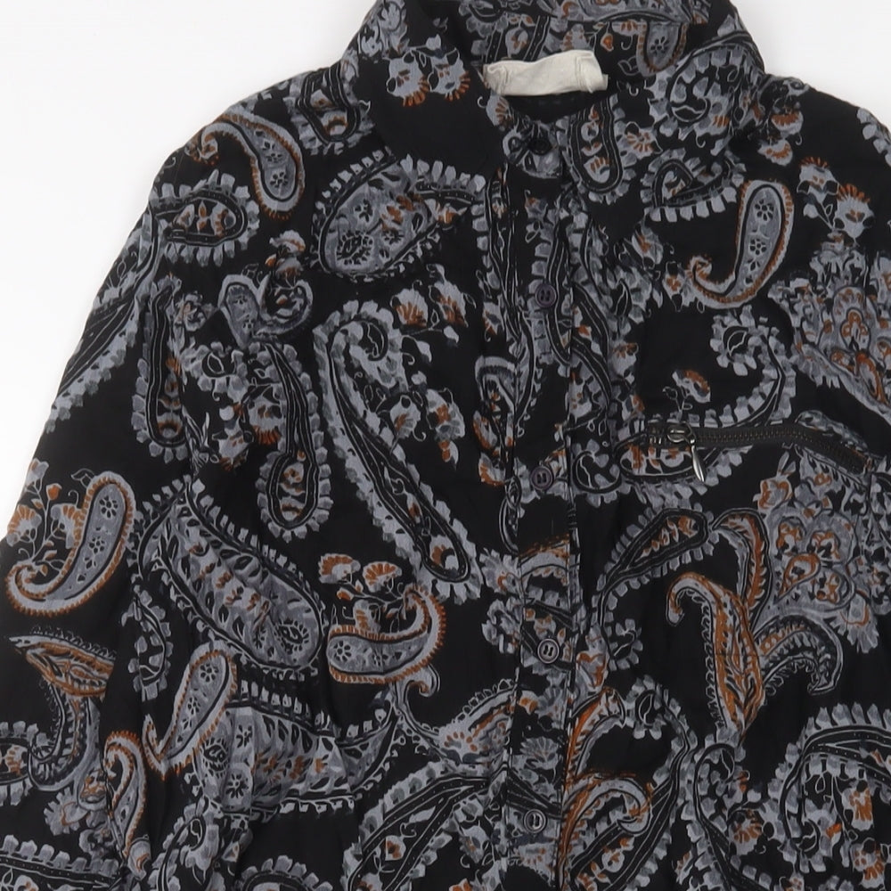 Womens Grey Geometric Viscose A-Line Size 8 Collared Button - Zip