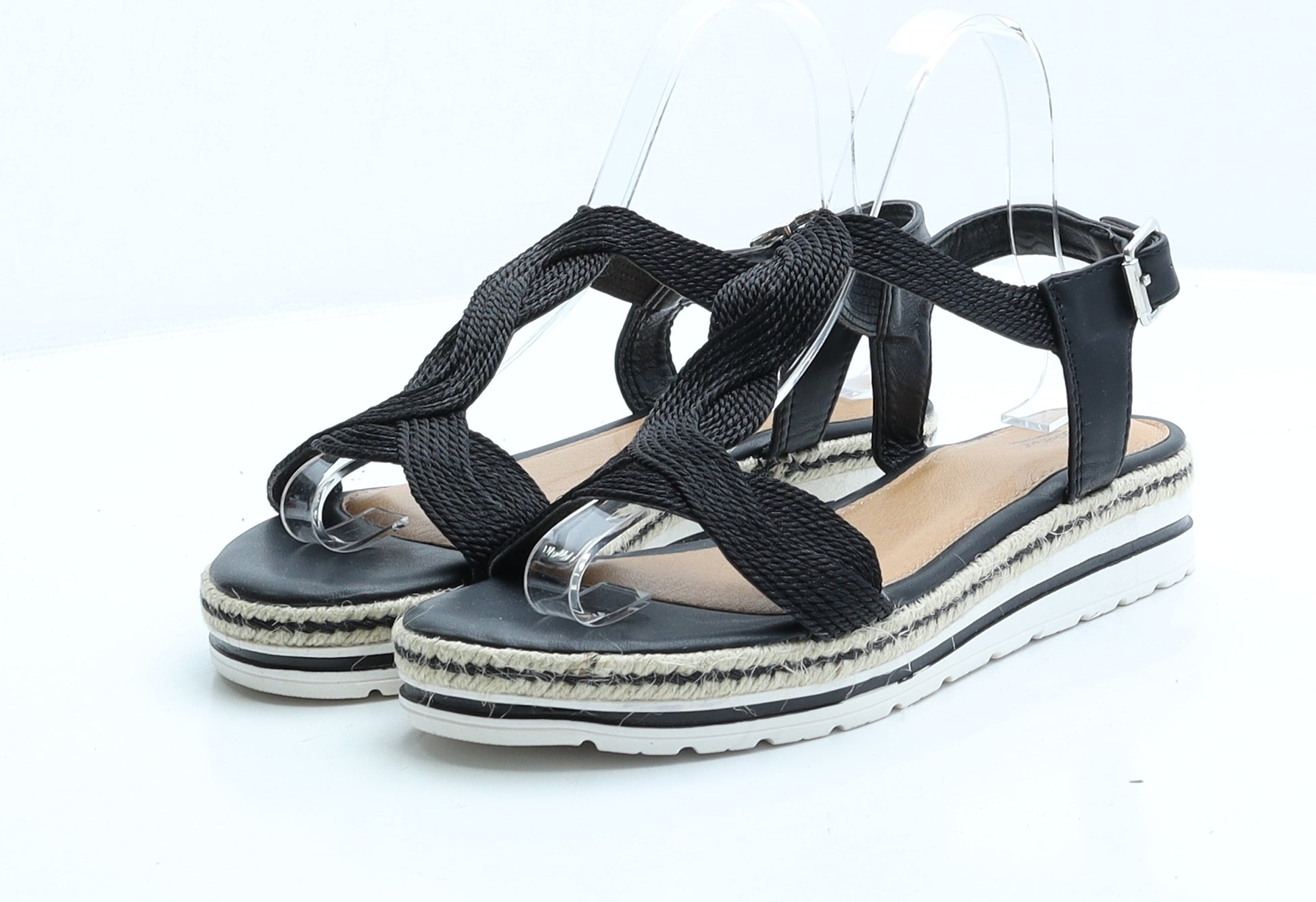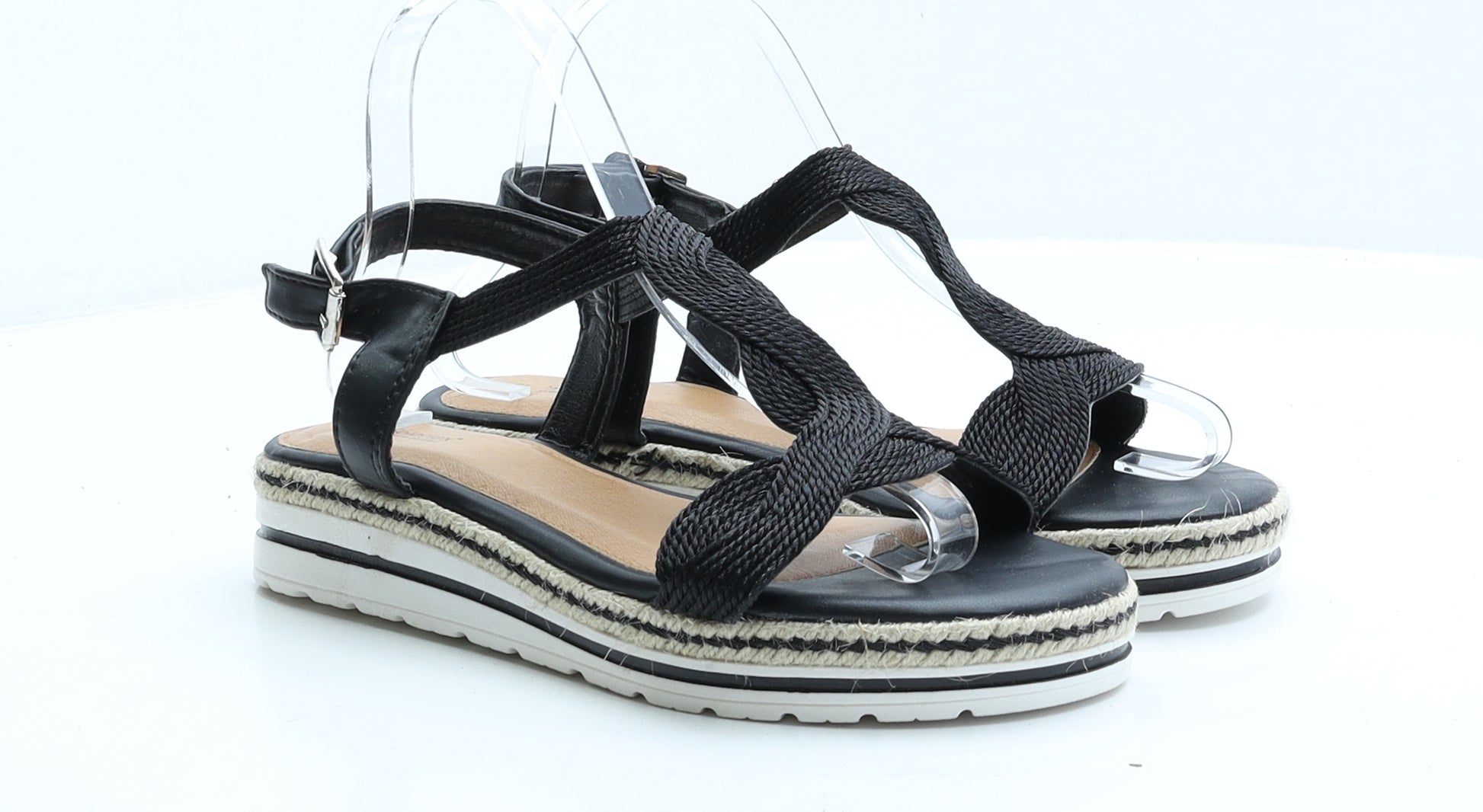 Womens Black Polyester Strappy Sandal UK 6 EUR 39