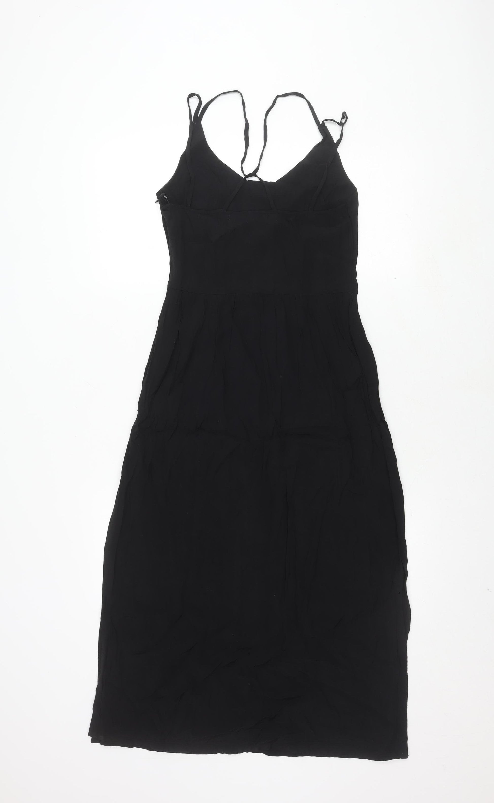 Discover effortless chic with this black sleeveless dress from Something Else by Natalie Wood, perfect for elevating your wardrobe. Designed for women, this subtle yet striking piece complements any occasion. The minimalist design ensures versatility, allowing you to dress it up or down with ease. Its simple elegance and high-quality craftsmanship make it a staple piece for every fashion lover. Whether you're heading to a casual outing or a formal gathering, this dress provides sophistication without trying too hard. The strappy sleeves add a touch of grace, making it perfect for the modern woman who appreciates both comfort and style. The clean, no-pattern design gives you the freedom to accessorize as you please, whether it's with bold jewellery, a statement bag, or classic heels. This dress makes a seamless addition to any wardrobe, offering timeless appeal for seasons to come. Despite being pre-owned, it remains in excellent condition, ensuring you feel as good as you look. Embrace the simplicity and elegance with confidence, knowing you're making a thoughtful choice for your wardrobe. Priced to offer great value, this dress is ready to be your next go-to outfit. Step out in style and let your silhouette do the talking with this versatile and elegant black dress.