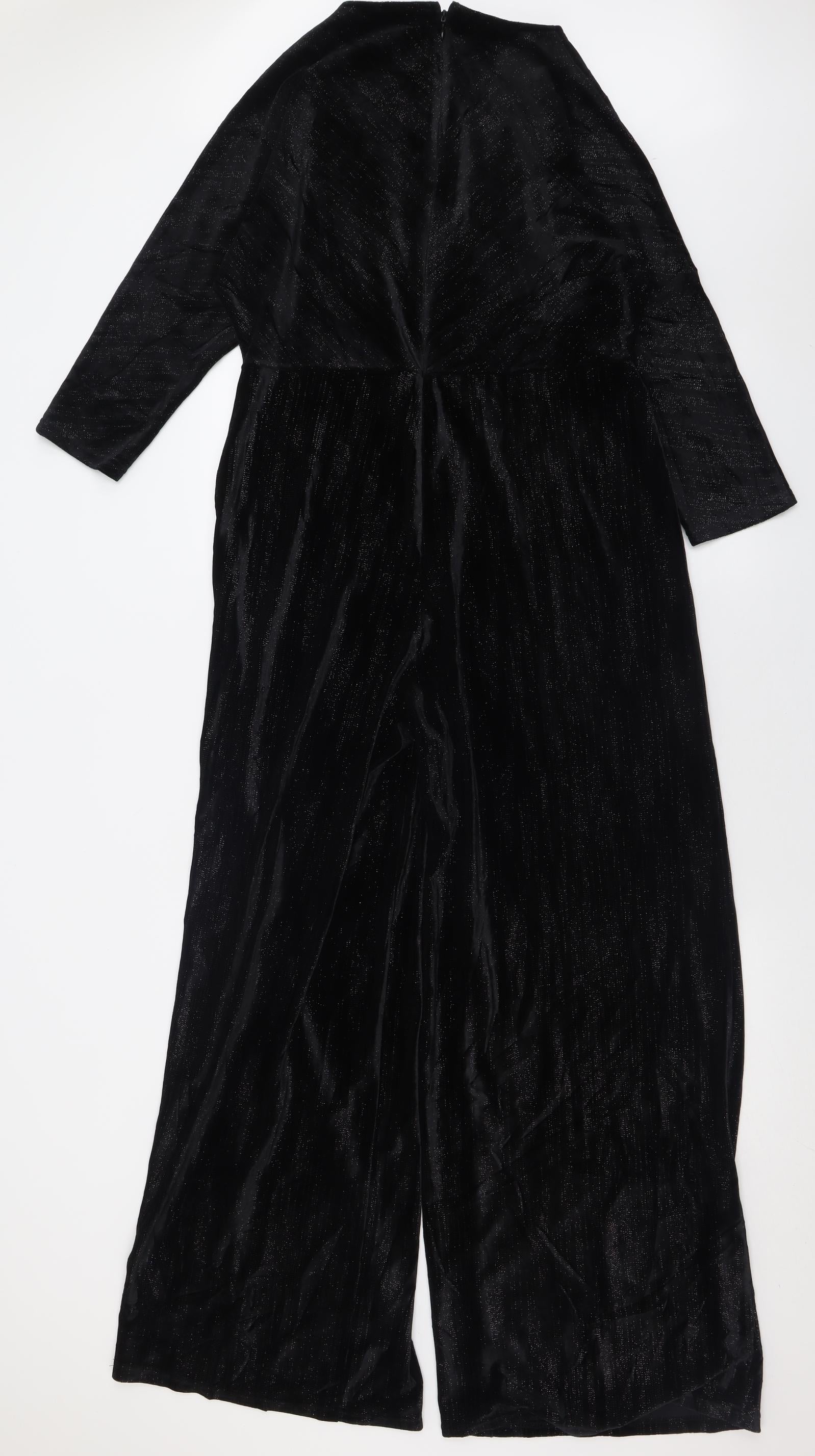 Sosandar Women's Black Velvet Shimmer Wide-Leg Jumpsuit Size 12R