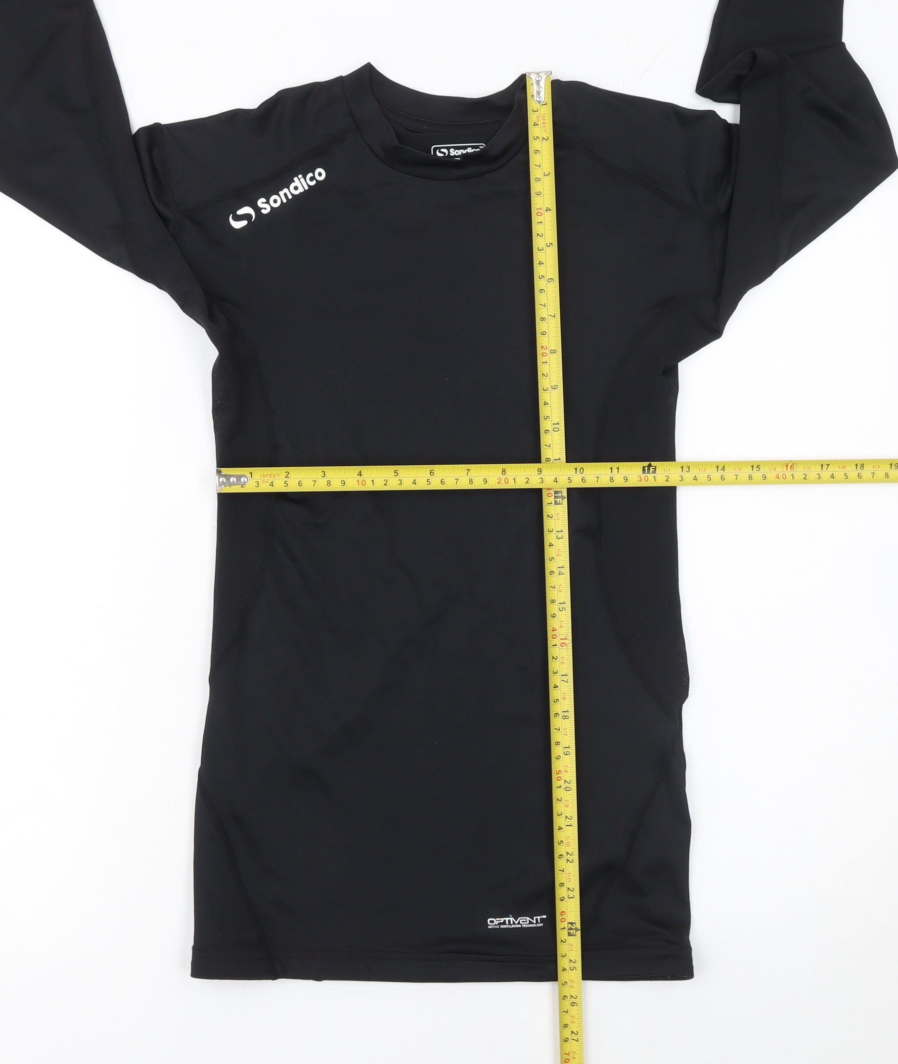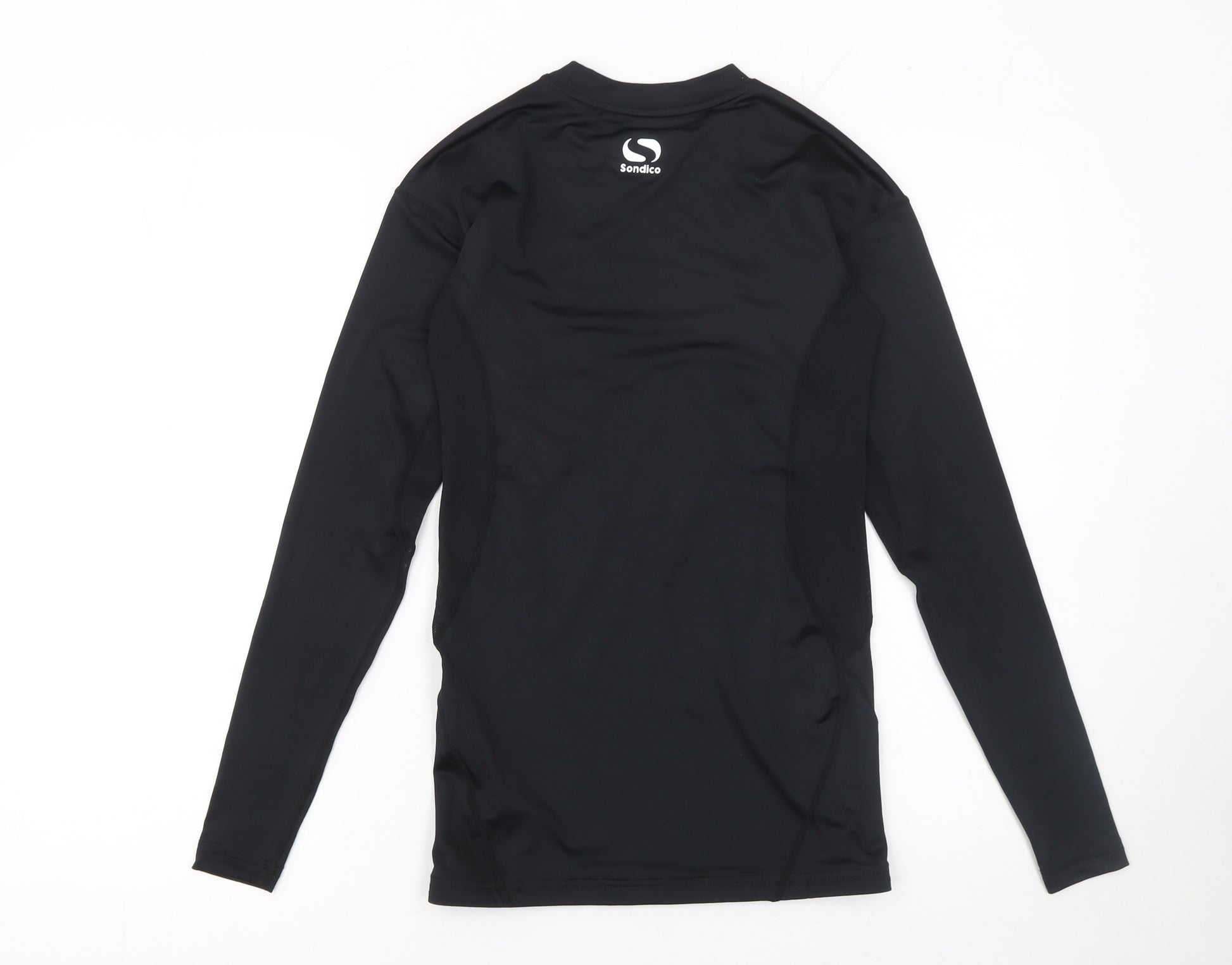 Enhance your performance with this Sondico men’s black long sleeve compression T-shirt, designed for active training and sports sessions. Built with advanced fabric technology, this top offers moderate compression support to improve blood circulation and muscle efficiency during workouts. The lightweight design and moisture-wicking properties help keep you cool and dry even in the most intense training conditions. Crafted from a blend of durable polyester and flexible elastane, this garment provides a comfortable and secure fit that adapts to your body’s movements effortlessly.Featuring a sleek and minimal aesthetic, this training top offers a crew neck design and raglan sleeves for unrestricted range of motion, while the solid black colour provides a timeless athletic look. Whether worn alone or as a base layer under sports gear, it delivers reliable comfort and resilience. Ideal for football, running, or everyday gym sessions, it’s a staple for any fitness-focused wardrobe.Sondico’s signature logo accent on the chest adds a stylish finish to this versatile piece, and the Optivent technology ensures breathability and quick drying performance. Perfect for those who value both function and comfort, this top is machine washable for easy care and designed to endure regular training use. With its sleek fit and modern construction, it’s an excellent choice for athletes and fitness enthusiasts alike.In excellent pre-owned condition with only minimal signs of wear, this activewear piece provides exceptional quality and performance at a great value. A fitted, breathable, and stylish top ideal for both indoor and outdoor workouts, ensuring comfort and ease through every rep and every run.
