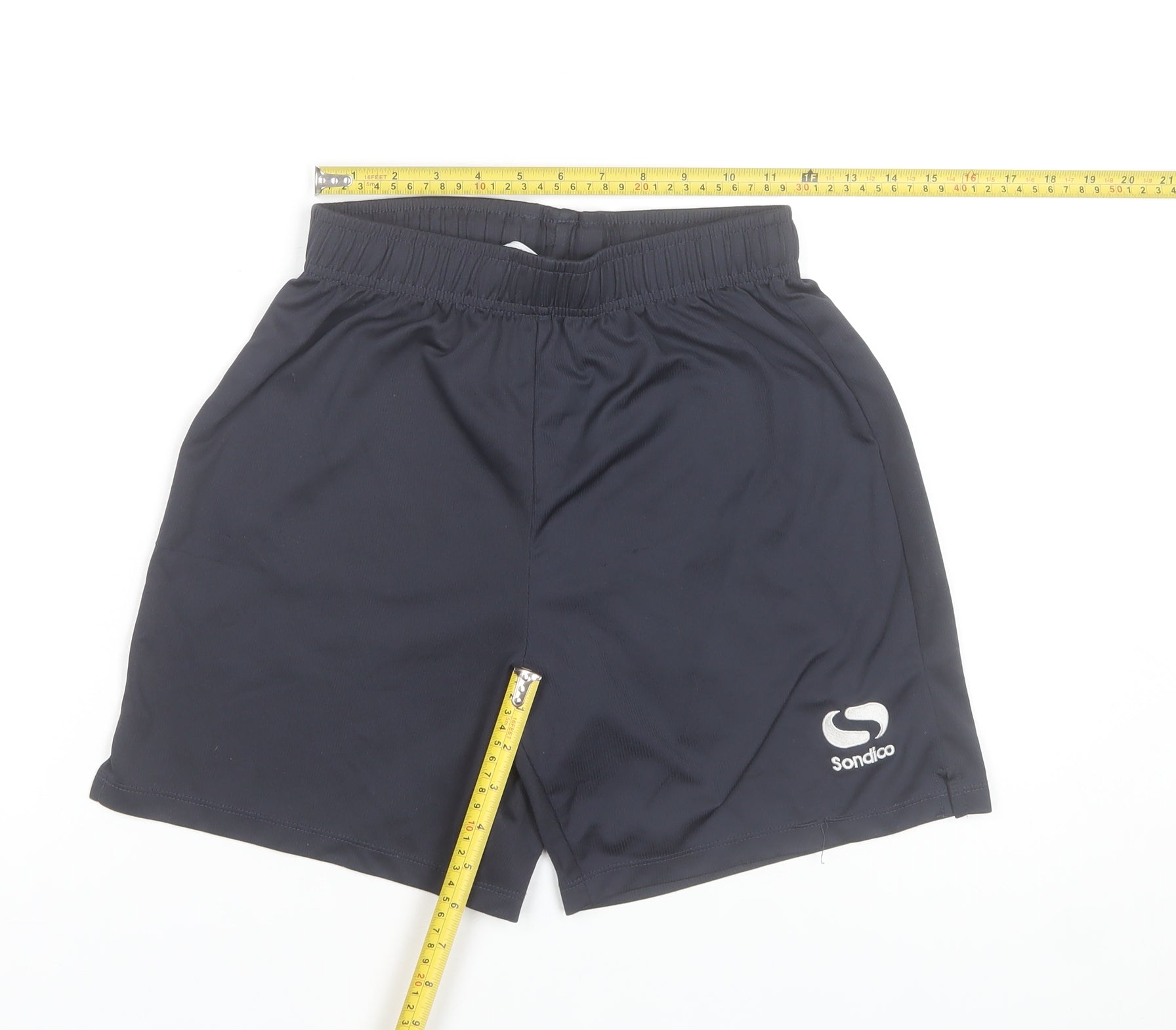 Stay cool and comfortable during every workout or match with these Sondico men's black athletic shorts. Designed for movement, these lightweight shorts are crafted from 100% polyester to provide excellent breathability and quick-drying performance, making them ideal for football, gym sessions, and running. The simple, functional design features an elastic waistband that ensures a secure and flexible fit, while the smooth fabric offers enhanced comfort against the skin. Their regular fit provides a classic athletic silhouette suited for all types of training and active pursuits. The crisp black shade offers a versatile and timeless look that pairs effortlessly with your favourite training tops or sports jerseys. With a durable construction, these shorts retain their shape and colour after multiple washes, ensuring a long-lasting addition to your sportswear collection. Designed to be machine washable for easy care, they are perfect for everyday training or leisure wear. Whether you're hitting the gym, joining a football match, or just enjoying a casual day out, these Sondico shorts deliver excellent performance and an understated style. Perfect for spring, summer, and autumn wear, these shorts are an essential activewear piece for any wardrobe. The official Sondico branding provides reassurance of quality and sport-driven design. Their lightweight fabric promotes ventilation and freedom of movement, giving you the confidence and comfort to perform at your best. With their combination of practicality, durability, and sporty style, these Sondico men’s black athletic shorts are a great choice for anyone looking to upgrade their activewear essentials. Ideal for gym workouts, football training, or running, they offer a dependable and comfortable fit for all-day performance.
